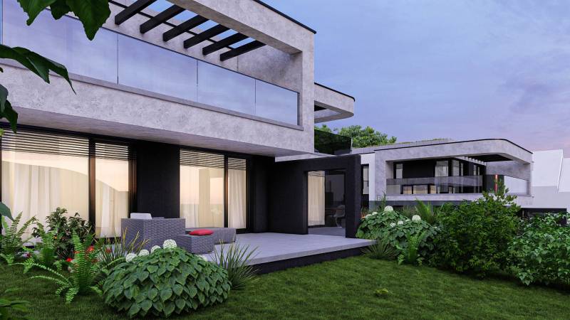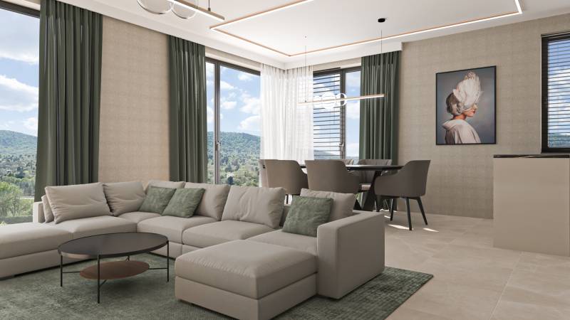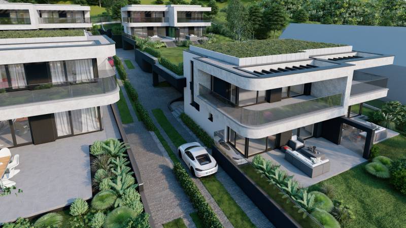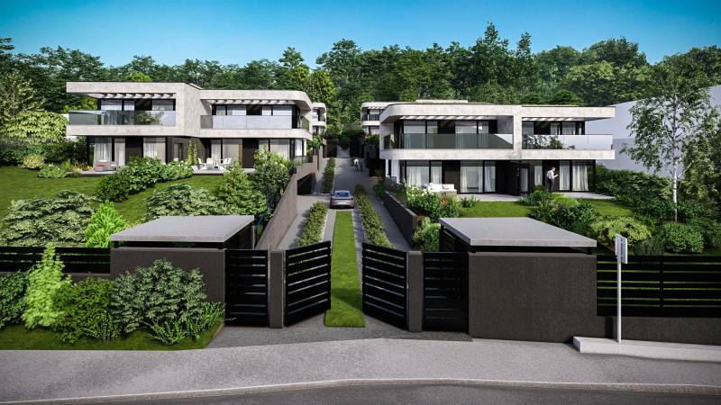 Válassza egy LUXUS otthon kényelmét, lenyűgöző PANORÁMÁVAL.Az ingatlan magában foglalja a csodás kilátást, a magas minőséget és a kedvelt lokáció nyújtotta nagyvárosi eleganciát.A hőszivattyúval felszerelt otthon kellemes klímát biztosít, valamint mennyezeti hűtés-fűtés gondoskodik az évszaktól független optimális hőérzet fenntartásáról.Az épület külsőleg kiemelkedően jó hőmegtartó képességű 20 cm vastag grafitos szigetelést kapott, ezzel biztosítva az ingatlan kedvező fenntartási költségei a téli hónapok során.Az építtető kiemelt figyelmet fordított a tervezés során a házak intimitásának előtérbe helyezésére, ennek nyomán a házak találkozásánál Sylka hang gátló tégla kerül beépítésre, ezzel minimalizálva a két házrész közötti áthallást.A telken 8 ikervilla kerül felépítésre, melyek mindegyikéhez sajáthasználatú kertrész valamint akár 3 autó parkoltatására alkalmas saját használatú önálló garázs is tartozik.Az ingatlan várhatóan 2025 nyarán kerül átadásra.A környék infrastruktúráját tekintve, nagyon jól ellátott a közelben számos bevásárlási lehetőség (Aldi, Lidl, Auchan) valamint óvoda iskola található.A város busszal, illetve vonattal csupán 25 perc alatt könnyedén megközelíthető.Amennyiben felkeltette érdeklődését az ingatlan, keressen bizalommal, akár hétvégén is!