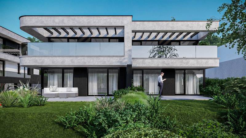 Válassza egy LUXUS otthon kényelmét, l PANORÁMÁVAL.Az ingatlan magában foglalja a csodás kilátást, a magas minőséget és a kedvelt lokáció nyújtotta nagyvárosi eleganciát.A hőszivattyúval felszerelt otthon kellemes klímát biztosít, valamint mennyezeti hűtés-fűtés gondoskodik az évszaktól független optimális hőérzet fenntartásáról.Az épület külsőleg kiemelkedően jó hőmegtartó képességű 20 cm vastag grafitos szigetelést kapott, ezzel biztosítva az ingatlan kedvező fenntartási költségei a téli hónapok során.Az építtető kiemelt figyelmet fordított a tervezés során a házak intimitásának előtérbe helyezésére, ennek nyomán a házak találkozásánál Sylka hang gátló tégla kerül beépítésre, ezzel minimalizálva a két házrész közötti áthallást.A telken 8 ikervilla kerül felépítésre, melyek mindegyikéhez sajáthasználatú kertrész valamint akár 3 autó parkoltatására alkalmas saját használatú önálló garázs is tartozik.Az ingatlan várhatóan 2025 nyarán kerül átadásra.A környék infrastruktúráját tekintve, nagyon jól ellátott a közelben számos bevásárlási lehetőség (Aldi, Lidl, Auchan) valamint óvoda iskola található.A város busszal, illetve vonattal csupán 25 perc alatt könnyedén megközelíthető.Amennyiben felkeltette érdeklődését az ingatlan, keressen bizalommal, akár hétvégén is!