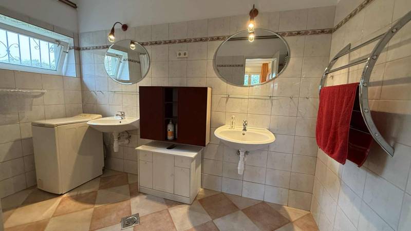Vidéki élet!Azonnal költözhető házikó!Nemesdéden,Somogy vármegyében eladó ez a 94 m2-es,felújított vidéki házikó sok sok melléképülettel,3000 m2-es körbezárt területtel!!Az ingatlan szép állapotban,bútorokkal együtt várja új tulajdonosát!Az évek alatt teljes felújításon esett át,víz-villany hálózat,burkolatok,konyha és fürdő modernizálva lett és a tető is szigetelt,fóliával,így nemm kell a felújítással bajlódnia.Központi fűtés található gázkazánnal!Helységei:Gépesített konyha és spájz,tágas nappali gyönyörű cserépkályhával,étkező,vendég wc,nagy,tágas,világos hálószoba saját fürdőszobával valamint vendégszoba fütdőszobával és külön bejárattal!!!Kertre néző,fedett terasz,vidéki sítlusban!Az udvaron kút,fedett autóbeálló,műhely,nagy pajta,tárolók találhatók.Autópálya 15 km,Zalakaros 25 km.vidéken,nyugalomban!!!Landleben! TOP HAUS-TOP LAGE-TOP PREIS!!Sofort bezugsfertiges Häuschen! In Nemesdéd, Komitat Somogy, wird dieses 94 m² große, renovierte Landhaus mit vielen Nebengebäuden auf einem 3000 m² eingezäunten Grundstück zum Verkauf angeboten! Die Immobilie befindet sich in gutem Zustand und erwartet ihren neuen Eigentümer mit Mobiliar! Im Laufe der Jahre wurde das Haus komplett renoviert: Wasser- und Stromleitungen, Bodenbeläge, Küche und Bad modernisiert und das Dach isoliert, mit Folie abgedeckt, sodass Sie sich nicht um Renovierungsarbeiten kümmern müssen. Es hat Ziegelwände,aber manche Wände sind auch aus Lehm.Zentrale Heizung mit Gasheizung vorhanden! Räumlichkeiten: Voll ausgestattete Küche mit Speisekammer, geräumiges Wohnzimmer mit wunderschönem Kachelofen, Essbereich, Gästetoilette, großes, helles Schlafzimmer mit eigenem Bad sowie Gästezimmer mit Badezimmer und separatem Eingang! Blick auf den Garten, überdachte Terrasse im Landhausstil! Auf dem Grundstück befinden sich ein Brunnen, überdachte Stellplätze, Werkstatt, große Scheune und Lagerräume. Ideal für Tierhaltung auch und für BIO Landwirtschaft!!Autobahn 15 km, Zalakaros 25 km. ERleben Sie Ungarn!!Ländlich, ruhig!!!