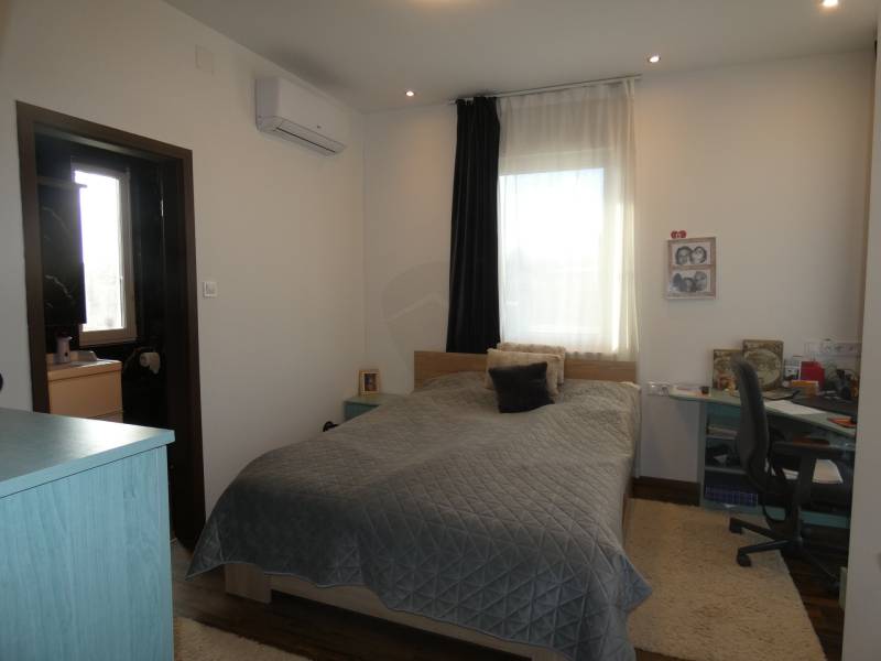 Szeged-Újszeged városrészben, Lőtér lakóparkban 2022. februárban átadott, 625m2-es telken levő, földszintes, nettó 133m2 alapterületű, amerikai konyhás nappali+4 szobás, dupla komfortos, dupla garázzsal rendelkező könnyűszerkezetes, napelemes, 0 rezsijű, akár két önálló lakássá alakítható családi ház eladó.Az ingatlan főbb jellemzői:- Minőségi anyagok felhasználása- tető hagyományos ácsszerkezet (nem szeglemezes)- Bramac cserép- Falazat hőszigetelése 27cm (falban 12cm közetgyapot, homlokzati 15cm polisztirolhab)- födém 40 cm hőszigeteléssel- Schüco műanyag ablakok 3 rétegű üvegezéssel- éves szinten 0 Ft a gáz és áram költség- 20 éve működő cég kivitelezése (300+ felépített ház)- NMÉ tanúsítvány- elektromos kazán (Bosch)- minden helyiségben termosztát- Fronius inverter (osztrák)- Q Cells napelemrendszer 15kW (német)- öntanuló hőszivattyús Ariston Hybrid villanybojler- padlófűtés vizes rendszerű (gázkazánra vagy hőszivattyúra is köthető)- 3X40 A villamos hálózat (elektromos autó is tölthető)- 3 inverteres klíma (2db 2,5kw, 1db 3,5kw)- Geberit beépített WC, Grohe csaptelepek- HT. helyiség melletti háló hangszigetelt- videó kaputelefon- elektromos kapu és ajtó- internet és TV csatlakozás minden szobában- 15kW-os szaldós napelem- akadálymentesített- redőny előkészítés- sarok telek (2 utcáról bejárat)- 250m2 térkő burkolat- 13 autóval parkolási lehetőség- padló fűtésű dupla garázs Hörmann elektromos kapuval (36m2)- eső vízelvezető árokba elvezetve- terasznak is van fűthető része télikertnek előkészítve- két generációnak is alkalmas (garázs lakrésszé alakításával)Ragadja meg az alkalmat! Jól átgondolt elrendezésű, magas műszaki tartalommal, abszolút modern, megbízható kivitelezővel épített, nagyon alacsony fenntartású (csak víz-és csatornadíj van), újszerű ingatlan tulajdonosa lehet, amely még szaldós elszámolású. Várom megtisztelő hívását.