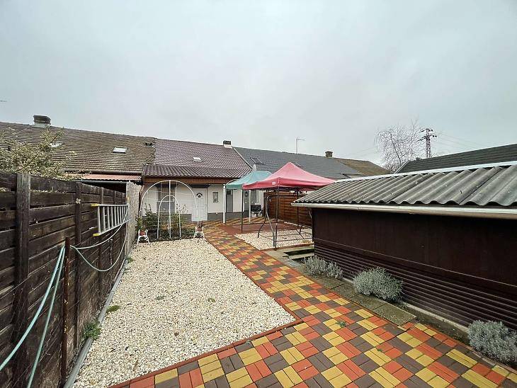 Dunakeszi Alag kedvelt, csendes részén eladó egy 57 nm-es, saját kertkapcsolatos, teljesen felújított sorház.Az ingatlan új tetőt, új elektromos hálózatot, 10 cm hőszigetelést, új nyílászárókat és 3×25 A áramellátást kapott.A padlástér kialakítható lakótérnek, így a lakás tovább bővíthető.Elosztás: előszoba, konyha–étkező, nappali, zuhanyzós fürdő-WC, mosókonyha.Fűtés: klíma és hősugárzó, melegvíz villanybojlerrel.A házhoz 120 nm saját kert tartozik viakolor burkolattal, továbbá 18 nm-es garázs és kocsibeálló. A gáz telken belül, de az lakásban nincs bent.További információért keressen bizalommal!