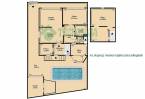 IV. kerületben, Újpest-kertváros részen, 347nm-es telken, bruttó 110nm-es, nettó: 94nm-es, előkertes, három fekvésű (É/D/Ny), duplakomfortos, 3 szobás, földszinti lakás eladó, 35nm-es pincével, saját 200nm-es medencés kerttel, autóbeállóval, garázzsal.Az ingatlan felújított állapotú. A felújítás és átépítés 2012-ben zajlott. A ház külső szigetelést kapott, a villanyvezetéketek áthúzták, a vízvezetékeket és a gázcsöveket korszerűsítették. Kondenzációs cirkó és 3 inverteres klíma került beszerelésre. A nappaliban hőszigetelő aljzatbeton, éjszakai áramról működtetett falfűtés és tömegkályha is gondoskodik a kellemes hőmérsékletről. Az ablakok és az ajtók thermo üveges műanyagok, redőnnyel és szúnyoghálóval. A konyha, a fürdőszoba és a WC felszereléseit, fali, illetve padlóburkolatait, a többi helyiség padlózatát és a belső ajtókat kicserélték. A szobák laminált padlósak, a többi helyiség járólapos.A beépített elemek a vételár részét képezik, a többi bútor megegyezés szerint maradhat.A kertben található egy 18nm-es medence és egy elektromos ajtóval felszerelt 24nm-es garázs. Az autóval történő behajtást elektromos kertkapu segíti.Az ingatlan egy helyrajzi számon van az emeleti lakással, így ügyvédi megosztással történne az adás-vétel.A közelben van lehetőség bevásárlásra, elérhető gyermek- és felnőtt orvosi rendelő, iskolák, óvodák.A lakás elhelyezkedése kiváló. Ingyenes parkolóhelyek szolgálják az itt lakók kényelmét, de a BKK járataival is könnyen megközelíthető, a kikapcsolódni vágyókat pedig a Farkas-erdő várja.A 96/121/270/296/296A buszok megállója 5 perc, a 20E/220/914 buszok és a 14-es villamos megállója 8 perc, Újpest-központ metróállomás pedig 15 perc alatt elérhető.IRÁNYÁR: 129.000.000.- FtFinanszírozás: az ingatlan tehermentes, banki finanszírozással is megvásárolható (CSOK+, babaváró), melyben független hiteltanácsadó kollégánk ingyenes tanácsadással áll rendelkezésükre!Egyes ingatlanjaink esetében csere és ingatlanbeszámítás is lehetséges. Továbbá ügyfeleink részére keresünk eladó ingatlant, tulajdonrészt, vagy haszonélvezeti joggal terhelt ingatlant Budapesten és az agglomerációban.VEVŐINK RÉSZÉRE A KÖZVETÍTÉS DÍJTALAN ELADÓINKNAK INGYENES ÉRTÉKBECSLÉST BIZTOSÍTUNK!A hirdetésben szereplő adatok tájékoztató jellegűek!