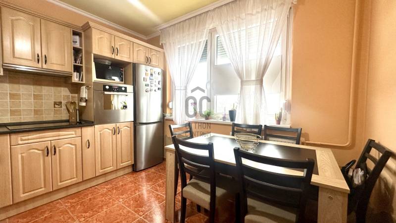 Kivételes lehetőség Tócóskertben – felújított, erkélyes, nappali + 2 szobás lakás eladó!Debrecen Tócóskert városrészének kiváló infrastruktúrájú, zöldövezeti részén, eladó egy 68 m²-es, 4. emeleti, igényesen felújított lakás, amely nappali + 2 különnyíló szobával, panorámás, parkra néző erkéllyel és kimagasló elhelyezkedéssel rendelkezik.Az ingatlan per- és tehermentes, ideális választás saját otthonnak vagy biztos befektetésnek.Az ingatlan főbb jellemzői:-alapterület: 68 m²-4. emelet, liftes társasház-nappali + 2 különnyíló szoba-külön fürdőszoba és külön WC-erkély, hátsó belső parkra néző panorámával-kelet–nyugati fekvés, egész nap világos-lifttől legtávolabbi lakás az emeleten –nyugodt, csendes környezetMűszaki állapot, felszereltség:-HiSec több ponton záródó biztonsági ajtó-műanyag nyílászárók redőnnyel és rovarhálóval-klimatizált-nappaliban LED-es álmennyezet-szobákban modern laminált padlóburkolat-távfűtés-gépesített konyha-(elektromos főzőlap, beépített sütő, mosogatógép)-fűtött lépcsőház-saját pincerészFenntartási költségek:-közös költség: 14.600 Ft/hó-alacsony rezsiköltségParkolás:-ingyenes parkolás a ház előttLokáció – minden karnyújtásnyira:Reál élelmiszerbolt – 20 mBenu Gyógyszertár – 75 mCsomagautomaták (GLS, MPL, Packeta, SameDay) – 75–200 mLidl – 200 mJégcsarnok – 200 mSpar – 300 mAldi – 1 kmPenny – 1,4 kmTesco – 1,5 kmA társasház mögött Tócóskert egyik legnagyobb zöldterületű parkja található, játszótérrel, pingpongasztallal, foci- és kosárlabdapályával.Közelben több bölcsőde, óvoda, általános és középiskola is elérhető, valamint kiváló tömegközlekedési csomópont biztosít gyors eljutást a város bármely pontjára.Társasházi felújítások:lépcsőház festése – 2024.07.panelhézag szigetelés – 2024.12.lift felújítás – 2025.11. (új lift került beépítésre)Tervezett felújítások:hideg- és melegvíz-, valamint szennyvízcsövek cseréjelépcsőház burkolásának folytatásaTovábbi információk:az ár tartalmazza a beépített konyhabútort és gépeketigény esetén a meglévő bútorok külön megvásárolhatókper- és tehermentes ingatlanLakás ideális lehet családoknak, fiatal pároknak, befektetőknek egyaránt.A lakás előzetes egyeztetést követően megtekinthető.