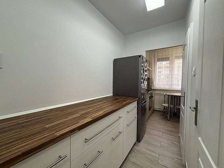 Békásmegyer Duna felőli oldalán, a Boglár utcában ELADÓ egy 48 nm-es, 2 szobás, TELJESKÖRŰEN FELÚJÍTOTT lakás LOGGIA-kapcsolattal!A lakás egy 10 emeletes panelház 3. emeletén található, nyugati fekvésének köszönhetően világos, délutánonként kifejezetten kellemes fényviszonyokkal. A felújítás nem csak esztétikai, hanem teljes műszaki megújulást is jelent. A teljes villamoshálózat cseréje megtörtént: új vezetékek, biztosítékok, kapcsolók és konnektorok kerültek beépítésre. A falak minden helyiségben gletteltek és festettek, ráadásul mindössze két hónapja, mosható festékkel, így az ingatlan azonnal költözhető állapotban van.A burkolatok egységes, letisztult képet adnak: a szobákban laminált padló, a többi helyiségben járólap került kialakításra.A szobákban szigetes LED szalagok és spot lámpák biztosítják a modern, mégis hangulatos fényt. A nappali komfortját tovább növeli a beépített inverteres klíma, amely nyári hűtésre és átmeneti időszakban fűtésrásegítésre is alkalmas.A nyílászárók cseréje szintén megtörtént: a hálószobában 3 rétegű thermo üveg, a többi helyiségben 2 rétegű thermo üveg található, mindegyik redőnnyel és szúnyoghálóval felszerelve. A loggia külön kiemelendő: szintén szúnyoghálós, valódi plusz térként használható.A konyha az ingatlan egyik legerősebb pontja. Új burkolatok és új bútorzat került beépítésre, a gépesítés pedig felsőkategóriás:– beépített NEFF XXL mosogatógép,– gáztűzhely,– elektromos sütő,– külön tisztított ivóvíz csap.Az összesen 5 méternyi konyhapult nemcsak látványos, hanem ritkán elérhető kényelmet is ad ebben a méretkategóriában.A fürdőszoba szintén teljesen megújult: új akrilkád és új burkolatok kerültek be, letisztult, időtálló stílusban.A fűtés házközponti, egyedi mérővel és szabályozóval ellátva, a havi költség körülbelül 8.000 Ft, ami jól tervezhető rezsit jelent. A radiátorok még vas kivitelűek, azonban a szabályozhatóság már adott.Biztonság szempontjából sem kell kompromisszumot kötni: 12 ponton záródó biztonsági ajtó, valamint külső rács gondoskodik a nyugalomról.Az ingatlan B energetikai besorolású, 1/1 tulajdonú és tehermentes, így jogi és műszaki értelemben is rendezett.Ez a lakás nem „csak felújított”, hanem átgondoltan, minőségi szinten újragondolt otthon. Azoknak szól, akik nem szeretnének kompromisszumot kötni sem műszaki tartalomban, sem kényelemben.Környékről:Közelben minden olyan szolgáltatás megtalálható amire szüksége lehet a mindennapokban (kisebb élelmiszer boltok, piac, éttermek, gyógyszertárak). Gyerekes családoknak nagyon ideális hiszen játszóterek, Óvoda, Iskola, Egyetem van a közelben.Tömegközlekedés szempontjából is tökéletes hiszen pár perc sétára található számos buszmegálló, illetve a H5-ös hév.Ha pedig kikapcsolódásra vágyik pár perc sétatávra elérhető a Duna part, ahol számos lehetőség van kikapcsolódni, sétálni, szórakozni.PARKOLÁS A HÁZ ELŐTT ÉS KÖRNYÉKÉN INGYENES.FINANSZÍROZÁS:Banki finanszírozással is megvásárolható, melyben irodánk ingyenes tanácsadással áll rendelkezésükre! VEVŐINK RÉSZÉRE A KÖZVETÍTÉS DÍJTALAN!A beépített bútorzat a vételár részét képezi.A hirdetésben szereplő adatok tájékoztató jellegűek.