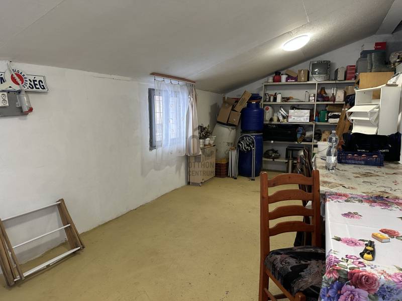 Székesfehérváron, Harmatos völgy szélén, 3 szintes, nappali és 2 szobás családi ház eladó.Mindhárom szint lakáson belül érhető el.Szuterén (29,4m2): egy fűtött, tágas konyha-étkező, egy kamra és egy pincehelységből állFöldszint (47,4m2): előszoba, étkező és konyha egy légtérben helyezkedik el. Innen nyílik még egy szoba, egy fürdő-WC és lépcsőház, mely a szuterénbe vezet.Tetőtér (12,4m2): az előszobából lenyitható lépcsőn lehet feljutni. Közlekedő és egy nagy szoba fogad bennünket.Szobák laminált burkolatuak, többi helyiség járólapozott.A ház 83-ban épült tégla falazattal, vasveton födémmel és pala tetővel. 2015-ben bővitették a jelen állapotára, szigetelték a tetőteret és új Lindab héjazatot kapott.Ablakok fa és műanyag szerkezetüek. Fűtés gázkonvektorokkal, hűtő/fűtő klímával és szilárd tüzelésü kályhával van biztosítva. Melegvizet kettő villanybojler adja.Az épülethez kapcsolódik egy 25m2-es tágas nyári konyha.2 autó védett tárolásáról is gondoskodott a tulajdonos. A garázsba autómata úszókapun, fedett beállóba egy másik uszókapun lehet behajtani.Ide tartozik még egy 16,5m2-es műhely. A műhelyben és a nyárikonyhában kiépítették a 3X16A áromellátást.Kertben számos termő gyümőlcsfa lett telepítve:cseresznye, őszibarack, sárgabarack,meggy, szeder, körte, naspolya, birs, szőlő és málna is megtalálható.Öntözése egy biztos hozamú fúrt kútról történikMegközelíthetőség: autóbusz megálló csak egy percre van. M7 autópálya 7 perc alatt elérhető.