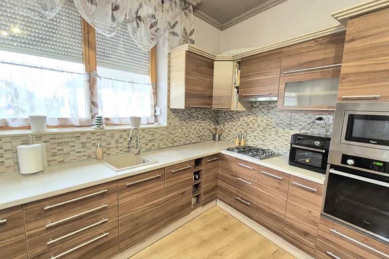Baján kedvelt részen, a Belváros szélén, eladó egy 143 nm-es, kétszintes, téglaépítésű családi ház. Az ingatlan 1985-ben épült. A földszinten tágas nappali, beépített konyha, hálószoba, fürdőszoba, valamint mosókonyha biztosítja a kényelmes mindennapokat. Az emeleten két hálószoba, fürdőszoba és egy tároló került kialakításra. Az egyik szobából egy 4 nm-es erkély nyílik.A szobák laminált burkolattal rendelkeznek, a ház állapota kiváló. Műszaki felszereltségét tekintve az ingatlan 12 cm-es vastagságban hőszigetelt, hőszigetelt fa nyílászárókkal, új kondenzációs gázkazánnal, valamint riasztórendszerrel ellátott, ami energiatakarékos és biztonságos működést garantál.A házhoz garázs is tartozik, valamint egy 15 nm-es terasz, grillező, amely tökéletes helyszíne lehet családi ebédeknek, baráti összejöveteleknek vagy egy nyugodt reggeli kávézásnak. A kellemes, otthonos környezet ideális teret biztosít a közös pillanatokhoz és a mindennapi kikapcsolódáshoz.Ideális választás családok számára, akik nyugodt környezetben, mégis jó elhelyezkedéssel keresnek minőségi otthont.Irányár: 88.000.000 Ft