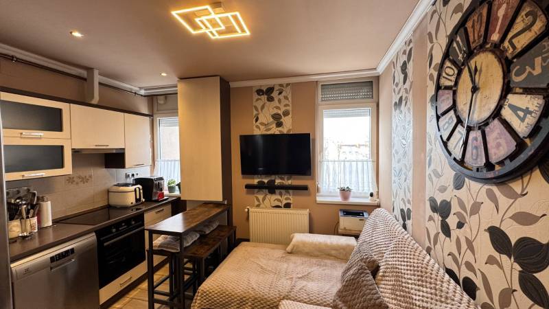 Eladó Debrecen szívében, a Belvárosban egy szép állapotú, világos, napfényes, pár évvel ezelőtt teljes körűen felújított és átépített nappali+ 2 szobássá alakított, klimatizált 43 nm-es 4. emeleti lakás, amely ideális választás azok számára, akik saját otthonra vagy befektetési lehetőségre vágynak. Az ingatlan főbb jellemzői:- Fűtés klímával és gáz cirkó rendszerrel - radiátoros hőleadókkal- megoldott-megbízható, gazdaságos működéssel.- Nyílászárók: többrétegű műanyag nyílászárók, redőnnyel és rovarhálóval felszerelve.- Villamoshálózat: felújított, biztonságos, mai igényekhez igazítva, 1 fázis 25 Amper.- Két Samsung márkájú hűtő-fűtő klíma: a maximális kényelem érdekében a meleg nyári napokra is felkészült az otthon.- Érintőkapcsolók- Wifiről is vezérelhetőek.- A lakásra belülről 10 cm kőzetgyapot szigetelés, a házra kívülről 15 cm szigetelés került-kiváló a hőtartó képesség. A külső szigetelés teljes költsége kifizetve.- A riasztó- rendszer növeli a biztonságot.- A teljes lépcsőházban felújításra került a villamoshálózat.A lakáshoz tartozik egy 2 nm nagyságú önálló pince és egy közös biciklitároló helyiség. A lakásban található gépek megegyezés tárgyát képezik.Az ingatlan elhelyezkedése ideális, a város központjában található, így az élelmiszerboltok, éttermek és szórakozási lehetőségek karnyújtásnyi távolságban elérhetőek. A közlekedés szempontjából az ingatlan lokációja kiemelkedő, villamos- és a buszmegálló, vasútállomás pár perces sétával megközelíthető. Ez a belvárosi lakás nem csupán otthon, hanem egy befektetési lehetőség is, amely garantáltan értéket képvisel a jövőben.Tökéletes lehetőség fiatalok kezdő lakásaként, de a bérbeadás is kiemelkedő hozamot biztosít.Amennyiben hirdetésünk felkeltette érdeklődését, várjuk hívását a hét minden napján!