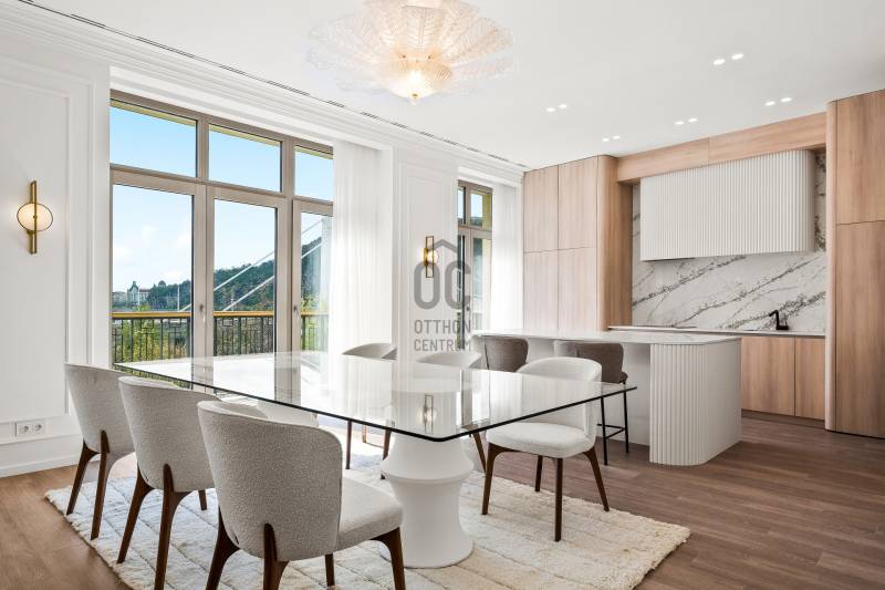 Eladó Budapest V. kerületében, a Március 15. téren, egy újépítésű, exkluzív lakás, amely minden igényt kielégít!Az ingatlan bruttó 211 m²-es alapterületével és jól átgondolt elrendezésével tökéletes választás azok számára, akik egy különleges, prémium otthont keresnek.Főbb jellemzők:2 hálószoba2 fürdőszoba1 tágas nappaliKülön konyha, étkező és kamraNagy belmagasság, napfényes, világos terekLuxus és kényelem egyedi kivitelezésbenA lakáshoz tartozik egy tágas, panorámás terasz, amely lélegzetelállító kilátást nyújt Budapest legszebb részeire. A déli tájolás biztosítja, hogy a lakás egész nap fényárban ússzon, miközben modern belső kialakítása a funkcionalitást és az eleganciát ötvözi.Ez a lakás ideális választás azok számára, akik:Központi, mégis exkluzív lokációt keresnek.Egyedi, újépítésű ingatlanba költöznének.Hosszú távon is értékálló befektetést szeretnének.Elhelyezkedés:Az épület kivételes lokációval rendelkezik, az Erzsébet híd közvetlen közelében. Az ingatlan nem csupán elegáns otthonként, hanem hosszú távon is értékálló befektetésként szolgál.Ez az ingatlan tökéletes választás azok számára, akik Budapest szívében, luxuskörnyezetben keresnek exkluzív otthont vagy befektetési lehetőséget.Amennyiben egy prémium kategóriás, csodálatos panorámával rendelkező ingatlanra vágyik, ne hagyja ki ezt a lehetőséget!Egyedi igényekre szabott lakáshitelekkel állunk rendelkezésére. Bankfüggetlen hitelcentrumunk az országban elérhető összes bank és hitelintézet ajánlatát versenyezteti az Ön számára díjmentesen. Munkatársaink nagy szakmai tapasztalattal várják Önt az előre egyeztetett időpontban akár a normál munkaidő után is.Bővebb információért és a megtekintéssel kapcsolatban hívjon bizalommal!Projekt bemutatásaEladó az V. kerületben egy páratlan lehetőség: ÖRÖKPANORÁMÁS, 1917 m²-es, önálló épület az Erzsébet híd lábánál, 7 GARÁZSHELYLEL!Az épületben 6 exkluzív, egyedi kialakítású, örökpanorámás lakás található, melyek lenyűgöző kilátást nyújtanak a Budai-hegyekre és a Citadellára. Minden lakás külön szinten helyezkedik el, saját tágas, panorámás terasszal – kivéve a lélegzetelállító Penthouse lakást, amely kétszintes kialakítással büszkélkedhet.Főbb jellemzők:Lakások mérete: 207–287 m²Tájolás: Déli fekvés, világos terekBelsőépítészet: Nagy belmagasság, modern eleganciaPenthouse különlegessége: Az épület két legfelső szintjét foglalja el, 3 hálószobás elrendezéssel, óriási üvegfelületekkel és két hatalmas, panorámás terasszal.Különleges kényelmi szolgáltatások:Terasz: Minden lakáshoz tartozik saját, nagy méretű teraszTároló: Pinceszinten privát tárolók biztosítottakGarázs: Az épület földszintjén 7 gépkocsi számára kialakított, modern emelőszerkezetes garázshelyek találhatók.További helyiségek: Elegáns lobby és üzlettér a földszinten.Elhelyezkedés:Az épület kivételes lokációval rendelkezik, az Erzsébet híd közvetlen közelében. Az ingatlan nem csupán elegáns otthonként, hanem hosszú távon is értékálló befektetésként szolgál.Ez az ingatlan tökéletes választás azok számára, akik Budapest szívében, luxuskörnyezetben keresnek exkluzív otthont vagy befektetési lehetőséget.Amennyiben egy prémium kategóriás, csodálatos panorámával rendelkező ingatlanra vágyik, ne hagyja ki ezt a lehetőséget!Egyedi igényekre szabott lakáshitelekkel állunk rendelkezésére. Bankfüggetlen hitelcentrumunk az országban elérhető összes bank és hitelintézet ajánlatát versenyezteti az Ön számára díjmentesen. Munkatársaink nagy szakmai tapasztalattal várják Önt az előre egyeztetett időpontban akár a normál munkaidő után is.Bővebb információért és a megtekintéssel kapcsolatban hívjon bizalommal!