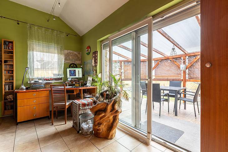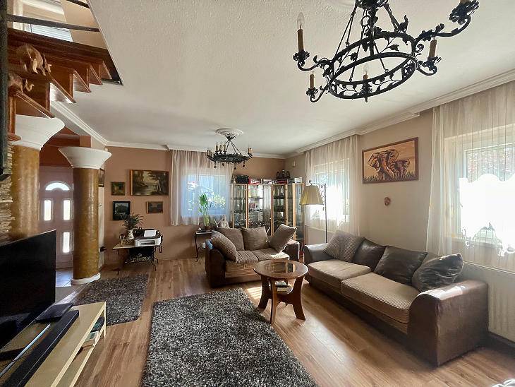 A 2000-ben épült, 150 négyzetméteres családi ház az 549 négyzetméteres telek első felében helyezkedik el, így helyet hagyva a hátul kiépítésre került kerti grillnek, beépített medencének, és egy 30 négyzetméteres melléképületnek, ahol egy szauna garantálja a maradéktalan kikapcsolódást.Az utcafront felőli 2 bejáratnak hála, az ingatlan tökéletesen alkalmas akár egy otthoni vállalkozás üzemeltetésére. Ehhez adott egy 30 négyzetméteres, 2 helységből álló, teljesen elszeparálható rész. Több generáció számára is ideális választás, még az se okoz gondot, ha több autó van a háznál. A 10 négyzetméteres tároló előtt helyet kapott egy 2 férőhelyes fedett garázs, valamint szabadtéri parkolóhely is kialakításra került további járművek számára.Az ingatlan banki finanszírozással is megvásárolható, melyben irodánk ingyenes tanácsadással áll rendelkezésére, hogy a jelenleg piacon lévő hitelkonstrukciók közül a legkedvezőbbet sikerüljön kiválasztani.További kérdés, valamint megtekintési szándék esetén, keresse irodánkat bizalommal!