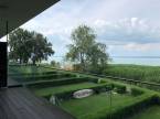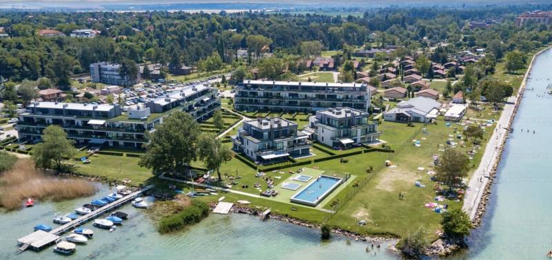 Megvételre kínálom ezt a ritka, keleti, balatoni panorámával rendelkező, 77 nm-es, 3 szobás, első emeleti luxus nyaralót. A lakás kiváló minőségű társasházban található, közvetlenül a Balaton partján, festői környezetben.Szeretne családjával, barátaival egy csodás helyszínen kikapcsolódni, minden kényelem és komfort közepette?Akkor ezt a lakást látnia kell!Az ingatlan főbb jellemzői:•Privát kert: A bejárat felől egy 73 nm-es, gondozott privát kert várja a tulajdonosát.•Kertkapcsolatos terasz: A bejáratnál egy 7 nm-es terasz biztosítja a kertkapcsolatot.•Balatoni terasz: Egy 13 nm-es, örök panorámás terasz nyílik a Balatonra.•Tároló: A bejárat mellett található saját tulajdonú 3 nm-es tároló.•Parkoló: A lakáshoz közeli, kényelmes parkolóhely.Belső Terek•Előtér: Beépített szekrény és mosógép.•Amerikai konyha: 12 nm-es, mosogatógéppel és étkezővel.•Nappali: 21 nm-es, padlótól plafonig érő üvegfallal, lenyűgöző panorámával.•Hálószobák: Kettő hálószoba, az egyik a privát kertre, a másik a Balatonra néző kilátással.•Fürdőszoba: Káddal és WC-vel.•Különálló WC: Kényelmes elrendezésű.Műszaki tartalom•Melegvíz ellátás: Beépített 120 literes Ariston villanybojler.•Fűtés-klíma: Norvég Nobo fűtőpanel, Hűtő-fűtő fan-coil berendezések.•Kandalló lehetőség: Nappaliban kialakított kémény.Közösségi szolgáltatások•Biztonság: 0-24 órás portaszolgálat.•Kényelmi szolgáltatások: 25 méteres feszített víztükrű medence, két gyermekmedence, játszótér, gondozott kert, saját strand és stég.A közös költség tartalmazza a portaszolgálatot, közös helyiségek takarítását, kertész díját, medence karbantartást, felújítási alapot, szemétszállítást, víz-, hűtés-fűtés átalányt.Az ingatlan eladási ára nem tartalmazza a parkolóhelyet és a tárolót.•Parkolóhely ára: 6 millió Ft•Tároló ára: 4 millió FtEz az ingatlan tökéletes választás, legyen szó saját használatról, kiadásról, szezonális vagy állandó lakhatásról. Az ingatlan frekventált lokációjának, örök panorámájának és magas minőségű kivitelezésének köszönhetően folyamatos értéknövekedés várható.Ne hagyja ki ezt a kivételes lehetőséget! Komfort, kényelem, minőség és egy álomszerű környezet várja új tulajdonosát.