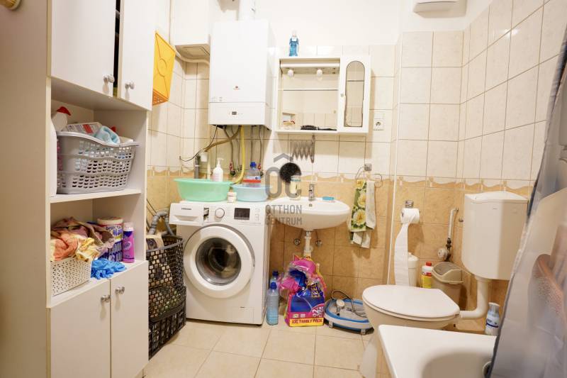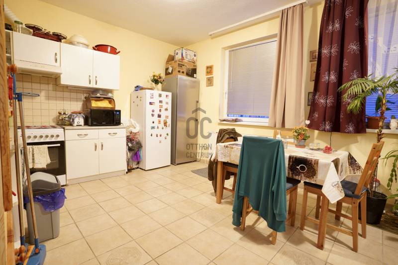 Budapest XVIII. kerületében, Újpéteritelepen, a Nemes utcában rendezett társasházban kínálunk megvételre egy 49 m²-es, 2 külön nyíló szobás, utcára és belső udvarra is néző, világos és jó elosztású első emeleti lakást,melyhez tarozik egy felszíni zárt udvari autó beálló amely plusz 2,5 millió forintét megvásárolandó.A ház 2003-ban épült, tégla szerkezetű, jó állapotú épület, mindössze 18 lakással. A társasház földszintjén üzletek találhatók – többek között pékség, virágbolt, dohánybolt és egy Otthon Centrum iroda is –, így minden fontos szolgáltatás karnyújtásnyira elérhető.A első emeleten található lakás tehermentes, hitelezhető.Az ingatlanban jelenleg megbízható bérlő lakik több éve , aki igény esetén szívesen maradna is, így kiváló lehetőség ez befektetés szempontjából. Amennyiben saját célra vásárolná meg az lakást a bérlő 60-90 napon belül tud kiköltözni. A házban több 2-3 szobás lakás is van még eladó.A lakás helyiségei:-nappali-étkező: 18,28 m²-konyha: 8,29 m²-külön nyíló hálószoba: 11,13 m² -előszoba: 5,82 m²-fürdőszoba-WC: 5,8 m²A fűtésről 2017-ben cserélt, kondenzációs gázcirkó gondoskodik, amelynek idei nagy karbantartása már megtörtént. A lakásban klíma is található, valamint műanyag nyílászárók kerültek beépítésre.A villany- és gázórák feltöltőkártyás rendszerűek, a közös költség 16 170 Ft/hó.A lakáshoz zárható közös tároló is tartozik, a lépcsőház földszintjénParkolás az utcán ingyenes. De a lakáshoz kötelezően megvásárlandó egy felszíni udvari beálló melyek ára 2,5 millió forint. A környék csendes, rendezett és biztonságos.A közlekedés kiváló: néhány perc sétával elérhető több buszjárat, amelyekkel gyorsan megközelíthető a Kőbánya-Kispest metróvégállomás és a belváros is. Autóval az Üllői út közelsége révén a reptér és az M0-ás is könnyen elérhető.Ha egy kiváló elhelyezkedésű, jól karbantartott, azonnal költözhető lakást keres a XVIII. kerületben, ez a lehetőség Önnek szól.Amennyiben bármilyen kérdés felmerült Önben vagy szeretné megtekinteni az ingatlant keressen bizalommal. Továbbá igény esetén a vásárlás teljes folyamata során magas szintű, szakmailag releváns hitelügyintézői támogatást biztosítunk, a finanszírozási lehetőségek áttekintésétől egészen a sikeres folyósításig.Ez az ingatlan a \"Felező csomag\" megbízási portfólióhoz tartozik. Részletek az Otthon Centrum weboldalán.