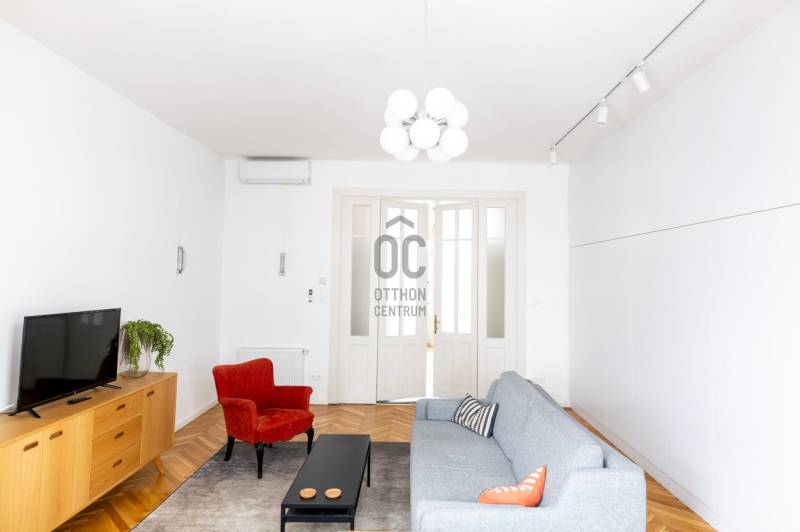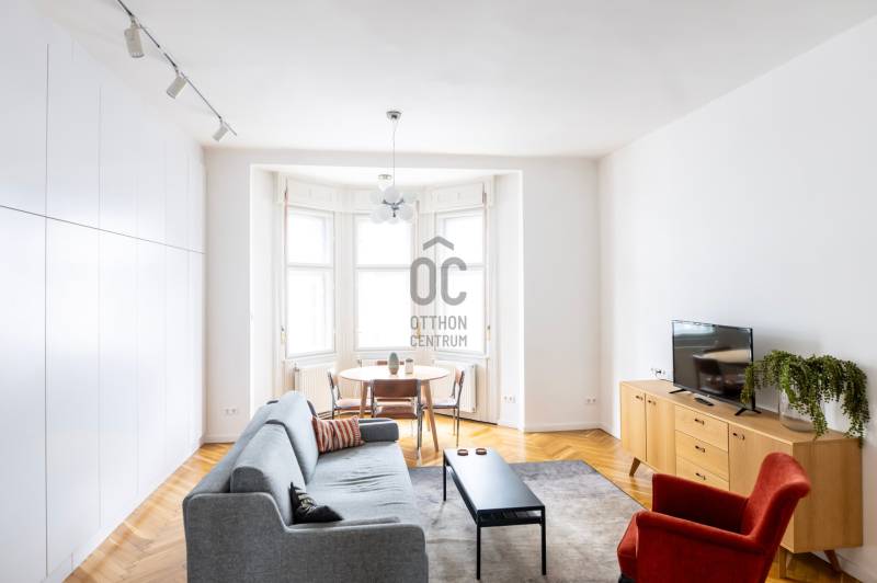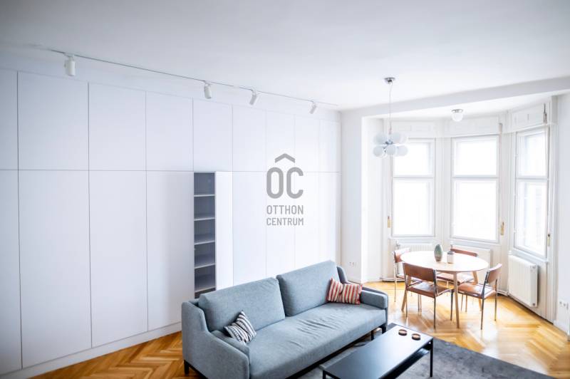 Október 6. utca az egyik legértékesebb része Lipótvárosnak. A kerület 10 legdrágább utcája között van.*Nevét az aradi vértanúk emlékére kapta.5 perc sétára a Parlament, Szabadság tér, Szent István Bazilika, Operaház, Dunakorzó és még sorolhatnám.Éttermek, kávézók széles választéka elérhető.Itt épült 1911-ben Román Miklós és Román Ernő tervei szerint ez a klasszikus, lipótvárosi polgári épület.Az 58 m2 - es lakás a liftes ház 5. emeletén van.Nappalija az Október 6. utcára néz, egyik oldalán padlótól-plafonig végig futó gardróbbal.Hálója csendes, befelé néző ablakkal.Az ablakos, gépesített, külön - konyha nagy értéke a belvárosi lakásoknak. Ma már ritkábban találkozunk vele. ( általában a nappaliba építik ) Fürdője modern, zuhanyzóval ellátott.A külön háztartási helyiségben található a kazán, mosógép.A lakás felújított, klimatizált, egyedi gáz fűtéssel. Ajánlom otthonnak, ingatlanbefektetésnek egyaránt.* KSH ingatlan adattár