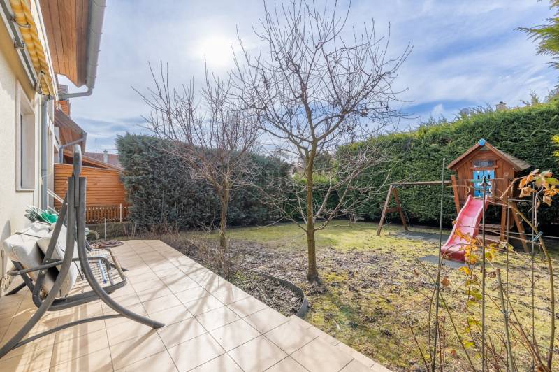 Budapest 22. kerületében, Budafok csendes, barátságos környezetében található 2003 ban épült sorházat kínálunk eladásra. 375 négyzetméteres telekkel rendelkezik, így bőséges teret biztosít a családi élethez. A házban négy tágas szoba található, amelyek közül a nappali különösen világos és hívogató, ideális helyszín a közös családi programokhoz. A házhoz tartozik egy 16,4 négyzetméteres terasz, ahol a nyári estéket kellemesen töltheti el a család. Az ingatlan tehermentes, így azonnal birtokba vehető. Fűtés gáz (cirko) rendszerrel működik. A kert rendezett és világos, automata öntözőrendszerrel felszerelt, amely megkönnyíti a növények gondozását, így Önnek nem kell sok időt töltenie a kertészkedéssel. A környék rendkívül kedvező adottságokkal rendelkezik, hiszen a csendes utcák és a barátságos szomszédság ideális környezetet biztosítanak a gyermekek számára. Az ingatlan közelében található boltok, iskolák és óvodák, így a mindennapi élet kényelmesen megoldható. A közlekedés szempontjából is előnyös a helyszín, hiszen a tömegközlekedési lehetőségek könnyen elérhetők, így a főváros többi része is gyorsan megközelíthető, legyen szó autóval vagy tömegközlekedéssel való utazásról. Ez a ház nemcsak egy ingatlan, hanem egy otthon, ahol a családja boldogan élhet. Ha Ön is szeretne egy olyan helyet, ahol a gyermekeinek biztonságos és nyugodt környezetet biztosíthat, akkor ez a lehetőség Önnek szól.