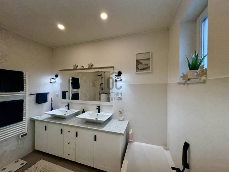 EXKLUZÍV, EGYSZINTES PRÉMIUM OTTHON – Siófok, Balaton part közeli, csendes villanegyedVannak ingatlanok, amelyek túlmutatnak a négy falon – ez az otthon a kifinomult életstílus, a nyugalom és a kompromisszummentes kényelem szinonimája. Siófok egyik legkeresettebb, elegáns környezetében kínálunk egy gondosan megtervezett, egyszintes luxus családi házat, amely teljes berendezéssel, azonnal költözhető állapotban várja új tulajdonosát. Az ingatlan tehermentes, rendezett tulajdoni viszonyokkal rendelkezik.KIVÁLTSÁGOS ELHELYEZKEDÉSA Balaton partjától mindössze 500 méterre, a városközponttól 800 méterre, csendes, nívós családi házas övezetben található. Diszkrét nyugalom, mégis minden fontos szolgáltatás és bevásárlási lehetőség könnyedén elérhető.ÁTGONDOLT TÉRKIALAKÍTÁS – ELEGANCIA ÉS FUNKCIONALITÁSA főbejáraton át érkezve világos, tágas terek és harmonikus enteriőr fogad. A rusztikus és modern elemek kifinomult egységet alkotnak, családbarát, mégis exkluzív hangulatot teremtve.reprezentatív előszoba, vendégmosdókülön mosókonyha és gardróbszobakandallós 57m2-es nappali, közvetlen kapcsolattal a nagyméretű, hangulatos teraszhozelegáns étkezőprémium gépekkel felszerelt konyha kamrávalhárom kényelmes hálószobakét saját fürdőszobás, gardróbos lakosztálykülön fürdőszobás szoba, akadálymentesített kialakítással – ideális vendégek vagy többgenerációs együttélés számáragarázs és praktikus tároló helyiségekMŰSZAKI SZÍNVONAL – MODERN KOMFORTnapelemes fűtési rendszer, padlófűtésselhárom klímaberendezéskorszerű műanyag nyílászárók elektromos redőnyökkel és szúnyoghálóvaltégla falazat, 20 cm-es szigetelés, cserépfedésű tetőakadálymentes, egyszintes kialakítás – időtálló befektetésKERT ÉS KÜLTÉRI ÉLMÉNYA gondozott, parkosított kert automata locsolórendszerrel és fúrt kúttal rendelkezik.A 44 m²-es, napfényes terasz tökéletes helyszíne exkluzív vendéglátásnak és meghitt családi pillanatoknak.Medence, vagy vendégház kialakítására lehetőség adott.A telek másik része külön bejárattal is rendelkezik, külön órákkal, leválasztható – így további ingatlan építése vagy értékálló befektetés is megvalósítható. Ez az otthon azok számára készült, akik a minőséget, a nyugalmat és a prémium életszínvonalat keresik a Balaton közelében – kompromisszumok nélkül.