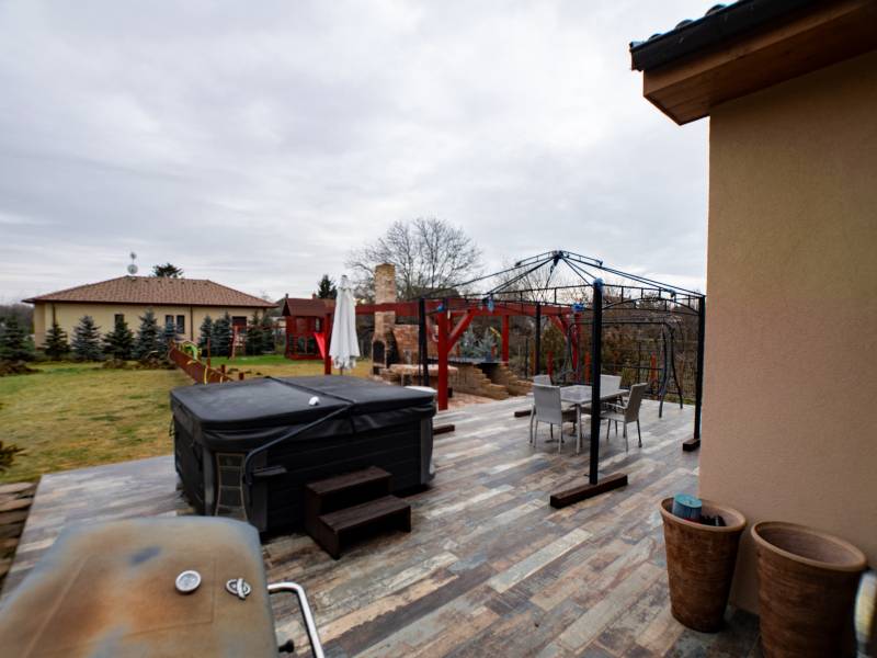 KECSKEMÉT-MÁRIAHEGY városrészében,A NYÍRI ÚTON egy igazán KÜLÖNLEGES ingatlant kínálunk eladásra, amely TÖKÉLETES választás CSALÁDOSOK számára, akik egy TÁGAS, kényelmes otthonra vágynak. Ez a használt ház 230 négyzetméteres alapterülettel rendelkezik, és egy 1942 négyzetméteres telken helyezkedik el, így bőven van hely a gyerekeknek a szabadban való játékhoz, vagy akár egy szép kertrész kialakításához. A házban négy szoba található, így minden családtagnak jut saját tér, legyen szó dolgozószobáról, vendégszobáról vagy gyerekszobáról. Két fürdőszoba teszi kényelmessé a mindennapokat, különösen a reggeli rohanás során, amikor mindenki egyszerre készülődik. A 65 négyzetméteres TERASZ ideális helyszín a családi összejövetelekhez, a baráti grillezésekhez, vagy csak egyszerűen a pihenéshez, miközben a gyönyörű panorámát élvezed. Az ingatlan KIVÁLÓ állapotban van, modern, MINIMALISTA kialakítással, amely lehetővé teszi, hogy könnyedén a saját ízlésedre formáld. Az ELEKTROMOS infra fűtés biztosítja a kellemes hőmérsékletet télen és a minimalista KANDALLÓ csodás látványt és meleget biztosít. A GARÁZSBAN két autó kényelmesen elfér, így a parkolás NEM jelent problémát. Máriahegy csendes, CSALÁDBARÁT környéke nemcsak a nyugalmat, hanem a biztonságot is garantálja, így ideális választás a gyerekek neveléséhez. A közlekedési lehetőségek is kiválóak: a város központja gyorsan elérhető autóval. Ez az ingatlan nem csupán egy ház, hanem egy otthon, ahol a család minden tagja megtalálhatja a számításait.Jellemzők:- nettó 227 m2-es lakótér- nappali + 3 hálószoba+ 2 fürdőszoba+ 1 gardróbszoba-tároló helyiség akár dolgozó szobának- három oldalú üvegezésű kandalló- 68 m2-es terasz- kerti kemence- kerti szaletli- 38 cm-es Ytong téglafalazat- külső homlokzati falon 15 cm vastag Multipor hőszigetelő rendszer- ablakok külső könyöklői műkőből készültek- TEKA kvarchomok mosogató tálca gyümölcsmosóval és egy medencével- TEKA forgatható flexibilis kifolyócsöves csaptelep- Wellis intelligens termosztátos zuhanyoszlop- Wellis fürdőkád- előkertben automata Toro öntöző rendszer telepítve kb.1500 m2- kültéri Wellis Everest típusú jakuzzi- elektromos padlófűtés- napozó terasz- szobák  a gardróbszoba a közlekedő tölgy parkettával burkolva- egyedi készítésű tölgyfa külső- belső nyílászárók- 3x32 Amper- 32 m2-es borospince- parkosított kert öntözőrendszerrel- magaságyás (konyhakertnek akár)- kerti játszótér gumiszőnyeggel.Ne habozz, ha kérdéseid lennének az ingatlannal vagy a vásárlási folyamattal kapcsolatban, bátran kereshetsz! Az ingatlanpiac folyamatosan változik, és ez a lehetőség nem maradhat sokáig nyitva. Érdemes gyorsan lépni, hogy ne maradj le erről a különleges ajánlatról!