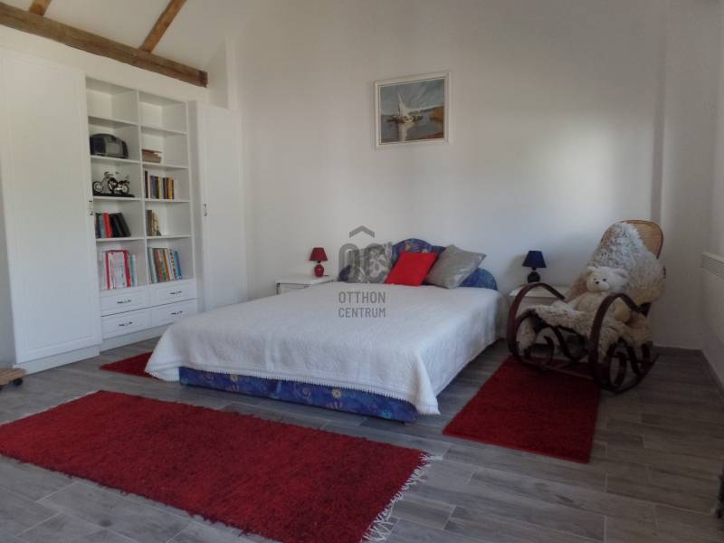 Eladásra kínálunk Balatonlelle csendes utcájában, teljesen felújított, autentikusan berendezett, fagerendás, vegyes falazatú, 140 m2 alapterületű, 2565 m2 telken álló önálló lakrésszel is rendelkező, parkosított családi házat.Az épületet vastag falak határolják, ami kiváló klímát biztosítanak. A fa nyílászárokat 2023-ban cserélték ki. A 32 m2 nappaliban nagy méretű cserépkályha biztosítja a kellemes.A nagy méretű konyhában beépített bútorok találhatóak teljes gépezettel és egy fatüzelésű cserépkályha jellegű sparhelt található. A tágas fürdőszobában sarokkád, bide is növeli a komfortot. Az ingatlanhoz tartozik egy irodának kialakított 16 m2 helyiség és egy külön bejáratú 20m2 önálló apartman melyben fürdőszoba-WC és főzősarok beépített elektromos főzőlap és hűtőszekrény biztosítja vendégek kényelmét, az apartman belmagassága lehetőséget ad egy galéria kialakítására.A lakrész alatt hűvös boros pince biztosítja a megtermelt gyümölcsök, zöldségek befőttek tárolását. Az udvar térkövezett, disznövényekkel díszített. A pihenő területhez dézsafürdő, filagória és egy kis halastó is tartozik. A terület többi részén gyümölcsfák és veteményes kert található. A telken öntözésre alkalmas kutak találhatóak, a fúrt kút 48 méter az ásott kút 12 méter mély. Balatonlelle a déli part egyik legkedveltebb települése, ahol egész nyáron rendezvények és kulturális lehetőségek várják az itt élőket.Amennyiben bármilyen kérdése van az ingatlannal vagy a környék adottságaival kapcsolatban, bizalommal keressen minket.Szívesen állunk rendelkezésére, hogy segíthessünk Önnek megtalálni az álmai otthonát vagy befektetési lehetőségét.Az ingatlanok iránti szenvedélyünk és szakértelmünk segítségével biztosítjuk, hogy a legjobb döntést hozza meg.Az adatok kizárólag a megbízóink által rendelkezésünkre bocsátott információkon alapulnak.Fentiekre tekintettel, az adatok teljességéért, helyességéért és aktualitásáért nem vállalunk felelősséget.Az árváltozás, adatmódosítás és közbeni értékesítés jogát fenntartjuk, mindezekért jogi felelősséget nem áll módunkban vállalni.