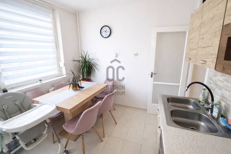 Tágas, jól variálható elrendezés, erkély, megújult vizes helyiségek és kiszámítható fenntartási költségek – mindez Tócóskert egyik jól megközelíthető, infrastruktúrával kiválóan ellátott részén.A lakásrólA 68 m²-es, háromszobás ingatlan a társasház nyolcadik emeletén helyezkedik el. A jelenlegi alaprajz körbejárható, a helyiségek egymásból nyílnak, ami tágas térérzetet biztosít. Igény esetén egy könnyűszerkezetes válaszfal elhelyezésével a lakás három külön nyíló szobássá alakítható, és ezzel egyidejűleg gardrób vagy külön tárolóhelyiség is leválasztható. Az előszoba kifejezetten tágas, nagy méretű beépített szekrényekkel, amelyek praktikus tárolási lehetőséget biztosítanak a mindennapokban. A nappali erkélykapcsolatos, amely használható kiegészítő életteret jelent. A konyha-étkező tágas, világos, kialakítása lehetővé teszi, hogy akár többtagú család is kényelmesen le tudjon ülni az asztal köré. A fürdőszoba és a WC külön helyiségben található, mindkettő 2023-ban megújult. Ugyanebben az évben az elektromos hálózat korszerűsítése is megtörtént. A nappaliban klíma került felszerelésre. A fűtés és a meleg víz jelenleg mérés nélküli távhővel működik: a téli hat hónapban a havi költség 23.000 Ft, a nyári hónapokban 8.000 Ft. Az ingatlan tehermentes.A társasházrólA lakás egy tízemeletes panelépületben található, amely nagy méretű lifttel rendelkezik. Szintenként mindössze három lakás került kialakításra, ami alacsonyabb átmenő forgalmat és csendesebb lakókörnyezetet eredményez. A társasház gazdálkodása rendezett, folyamatos karbantartás jellemzi. Legkésőbb jövőre mért távfűtési rendszer kerül bevezetésre. A korszerűsítés finanszírozása a ház megtakarítási alapjából történik, amelyet a havi 24.000 Ft-os közös költség tartalmaz, így a tulajdonosok részéről külön befizetést nem igényel. Közös pincerész és kerékpártárolási lehetőség biztosított.A környékrőlTócóskert Debrecen egyik jól kiépített lakótelepi városrésze, ahol a mindennapi élethez szükséges szolgáltatások gyalogosan elérhetők. A közelben üzletek, piac, posta, drogéria és egyéb kereskedelmi egységek találhatók. A tömegközlekedés kifejezetten kedvező: a buszmegálló 200 méterre található, ahonnan több járat is biztosít közvetlen kapcsolatot a város különböző pontjai felé. A közelben óvodák és iskolák is működnek. A városrész jelentős zöldfelületekkel rendelkezik, parkokkal, sportpályákkal és sétányokkal, amelyek hozzájárulnak az élhető lakókörnyezethez. A környéken a parkolás jelenleg ingyenesen megoldható, ami a mindennapokban kényelmes és költséghatékony lehetőséget jelent.Átgondolt elrendezésű, továbbfejleszthető alaprajzú lakás stabil társasházi háttérrel és kiváló elhelyezkedéssel.Hívjon bizalommal, egyeztessünk időpontot, és nézze meg személyesen, mit tud nyújtani Önnek ez a tócóskerti otthon!