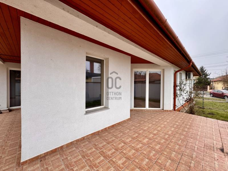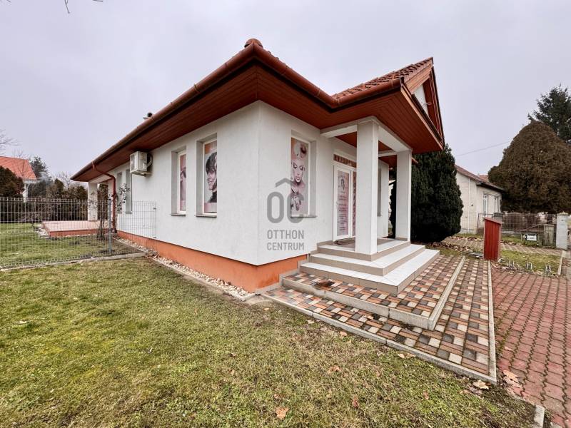 Győrzámolyi családiház \"nullás rezsivel\"!2013-ban téglából épült győrzámolyi családiház akár azonnali birtokbaadási lehetőséggel várja új lakóit.103 nm-es lakórész: nappali, konyha, étkező, 2 szoba, 2 db fürdőszoba mindegyik wc-vel és tusolóval illetve az egyikben kád is található. 30 nm-es üzlethelyiség, mely szépségszalonnak van kialakítva. Több mint 10 éve fodrász bérli. A bérleti díj bőven fedezi a ház rezsijét, sőt még bőven marad is belőle. Ha valaki viszont még szobát szeretne kialakítani arra is van lehetőség, mivel az üzlethelyiség és ház közötti fal úgy lett kialakítva, hogy összenyitható legyen. Tehát nappali+3,4 szobássá alakítható a ház.Telekméret ideális, 601 nm.Térkövezett bejárón keresztül autóval egy fedett beálló alatt parkolhatunk kényelmesen. Valamint egy 19 nm-es melléképület is található az udvarban ami akár garázzsá is alakítható, mérete 5,4*3,5m.Ház jellemzői:- 38-as Phorotherm tégla hőszigetelő vakolattal az északi oldalon 10 cm hungarocell szigeteléssel- betonfödémes cseréptetővel- kondenzációs gázkazán padlófűtéses és radiátoros hőleadással- kandalló a nappaliban- villyany 3*16 A- napfényes DNY-i tájolású, nagy nyílászárókkal ellátott nappali 55 nm-es terasszalHa felkeltettem az érdeklődésed nézd meg élőben! Jelenlegi formájában, tisztasági festés után is azonnal költözhető ingatlan.Hitelre van szüksége? Tudunk segíteni!Az Otthon Centrum az ország egyik legnagyobb és legmegbízhatóbb hitelközvetítőjeként, teljes körű és díjmentes hitelügyintézéssel, biztosításkötéssel áll rendelkezésére!Kérje személyre szabott ajánlatunkat Kollégáinktól!