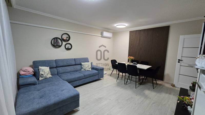 Exkluzív lehetőség Nyíregyháza belvárosában – 76 nm-es, parkra néző, erkélyes lakás!Nyíregyháza belvárosának egyik csendes, aszfaltozott utcájában kínálunk megvételre egy 76 nm-es, második emeleti, tégla építésű társasházi lakást, amely elhelyezkedésével és adottságaival egyaránt kiemelkedik a kínálatból.A tájolásnak köszönhetően a lakás egész nap világos, napfényes terekkel rendelkezik. A három külön nyíló szoba élhető, jól bútorozható, a praktikus elrendezést külön fürdőszoba és WC egészíti ki. Az erkély parkra néző kilátása ritka érték a belvárosban: nyugodt, zöld környezetet biztosít a mindennapokhoz.Műszaki tartalom és komfort:-tégla építés-gáz konvektoros-klímaberendezés-műanyag nyílászárók-liftes lépcsőház-önálló, zárható pincerész-alacsony, mindössze 9.200 Ft-os közös költségA lokáció kiváló: minden fontos szolgáltatás, intézmény, üzlet és közlekedési csomópont néhány percen belül elérhető, mégis csendes, élhető környezetben található az ingatlan.Ez a lakás ideális választás többgyermekes családok számára a három külön nyíló szoba miatt, fiatal pároknak hosszú távra tervezett, értékálló otthonként, valamint befektetőknek is, hiszen belvárosi elhelyezkedése, parkra néző adottsága és kedvező fenntartási költségei stabil bérbeadhatóságot biztosítanak.Egy átgondolt döntés azoknak, akik nem csupán lakást, hanem valódi értéket keresnek.A hirdetésben szereplő információk a megbízótól kapott adatok alapján készültek, pontosságukért felelősséget nem vállalunk!Amennyiben vásárláshoz hitelre is szüksége van, független hitel tanácsadónk ingyenesen tud Önnek segítséget nyújtani a legjobb konstrukciók kiválasztásában és a folyamat lebonyolításában. Irodánk kereső ügyfeleinknek teljes körű szolgáltatást nyújt, szakszerű tanácsadással, energetikai tanúsítvány elkészítésével, hitelügyintézéssel és profi ügyvédi segítséggel. Abban az esetben ha az ingatlan felkeltette érdeklődését keressen bizalommal!A HIRDETÉSI ADATOK ÉS AZ ALAPRAJZ TÁJÉKOZTATÓ JELLEGŰEK !