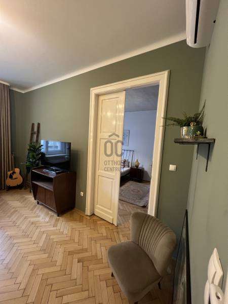 Eladásra kínálok egy 7. kerületi nappali plusz 2 hálós 1 emeleti erkélyes lakást Bauhaus liftes házban.(Egy lakás, ahol a város pezsgése csak egy lépés – az otthon nyugalma viszont adott.) Lokáció és környezet bemutatása – a belváros élhető oldalaAz Akácfa utca Budapest VII. kerületének egyik legkedveltebb, folyamatosan megújuló része.•Központi elhelyezkedés, mégis jól élhető utcakép•Gozsdu Udvar, Madách tér, Erzsébet körút pár perc sétára•Kávézók, éttermek, színházak, galériák a közvetlen közelben•Kiváló tömegközlekedés: metrók, villamosok, buszok•Mindennapi ügyintézés gyalogosan megoldhatóEz a környék ideális azoknak, akik szeretik a várost használni, nem csak benne lakni. Ingatlan leírása – világos, átgondolt, azonnal élhetőAz 1928-ban épült, Bauhaus stílusjegyeket hordozó, liftes társasház első emeletén található, 73 m²-es lakás:•Teljeskörűen felújított és igényesen bútorozott•Tágas, világos nappali•Két külön nyíló hálószoba•Napfényes erkély, utcai nézettel•Dupla komfort: fürdőszoba + külön vendég WC•Praktikus háztartási helyiségAz ingatlan azonnal költözhető, ideális választás azoknak, akik nem szeretnének felújítással vagy berendezéssel foglalkozni. Fő műszaki paraméterek – megbízható városi komfort•Alapterület: 73 m²•Szobák száma: 3•Fürdőszobák: 1•Külön WC: 1•Erkély: 6 m²•Fűtés: házközponti•Légkondicionálás: van•Tájolás: nyugati•Építés éve: 1928•Ingatlan állapota: kiváló•Ház állapota: jó•Birtokbaadás: azonnal Helyiséglista – élhető arányok, jól kihasználható terek•Előszoba – 4,5 m²•Nappali – 20 m²•Hálószoba – 15 m²•Hálószoba – 10 m²•Konyha – 13 m²•Fürdőszoba – 4 m²•Külön WC – 1 m²•Háztartási helyiség – 1,5 m²•Erkély – 2 m² Amiért szerethető ez az otthon•Élhető belvárosi lokáció•Azonnal költözhető állapot•Minőségi felújítás és berendezés•Világos terek, jó alaprajz•Bauhaus hangulatú társasház•Hosszú távon is értéktartó választás Kinek ajánljuk•Fiatal pároknak, városi életstílust kedvelőknek•Befektetőknek (kiváló kiadhatóság)•Külföldi bérlők számára ideális•Azoknak, akik kész megoldást keresnek a belvárosban Ez az ingatlan nem ígér többet annál, mint amit nyújt –de amit nyújt, azt magas színvonalon.Ha fontos Önnek a lokáció, a minőség és az azonnali költözhetőség, érdemes megnézni.Egyedi igényekre szabott lakáshitelekkel állunk rendelkezésére.Bankfüggetlen Hitelcentrumunk az országban elérhető összes bank és hitelintézet ajánlatát versenyezteti az Ön számára díjmentesen.Munkatársaink nagy szakmai tapasztalattal, teljes körű CSOK PLUSZ és OTTHON START PROGRAM ügyintézéssel várják Önt előre egyeztetett időpontban akár a normál munkaidő után is.Ez az ingatlan a \"Felező csomag\" megbízási portfólióhoz tartozik. Részletek az Otthon Centrum weboldalán.