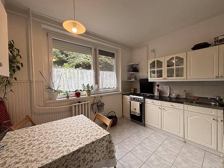 Budapest XIX. kerületében, kiváló tömegközlekedéssel és ellátottsággal rendelkező részen eladó egy jó állapotú, 59 m²-es, 1+2 fél szobás, első emeleti lakás.Az ingatlan praktikus elosztású, szobái külön nyílnak, a konyha pedig kifejezetten nagy és tágas, így étkezőként is jól használható, családok számára is kényelmes megoldást kínál. A nyílászárók műanyagok, a burkolatok jó állapotúak, a szobákban parketta található. A délkeleti fekvésnek köszönhetően a lakás világos, napfényes.A komfortot három darab klíma biztosítja, a fűtés távhőről működik, fix 12.000 Ft havi díjjal. A közös költség 28.000 Ft/hó, amely tartalmazza a vízdíjat és a felújítási alapot is. A lakáshoz tartozik továbbá egy 5 m²-es saját pince, amely kiváló tárolási lehetőséget kínál.Az ingatlan 1/1 tulajdonban van, per- és tehermentes.A környék infrastrukturális szempontból rendkívül előnyös: a közelben található a Kossuth téri piac, Aldi, Lidl, több óvoda, iskola, gyógyszertár és orvosi rendelő. A közlekedés kiváló: 42-es és 50-es villamos, valamint az M3-as metró is gyorsan elérhető – a belváros körülbelül 30 perc alatt megközelíthető.Vevőnk számára a közvetítés díjtalan!Ingatlanját díjmentesen érték becsüljük!