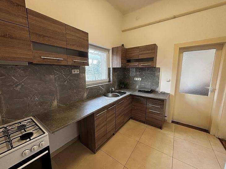 IV. kerületben, Újpest-kertvárosában, 329nm-es telken fekvő, 66nm-es 2szobás családi ház eladó, 15,5nm-es verandával.A telek osztatlan közös, használati megosztással, az ingatlan pedig peresített helyrajzi számmal és Alapító Okirattal rendelkezik, így elővásárlási joga van a szomszédnak. Hitelezhető, tehermentes!A ház 1960.-ban épült téglából, 2022.-ben pedig teljeskörűen felújították. Az épületet külsőleg leszigetelték (10cm), új tetőcserepeket és ereszt kapott. A villany-vezetékeket áthúzták rézre, a nyílászárók műanyag thermo üvegesek, a szobák laminált parkettások, a többi helyiség járólapos. A konyhabútort kicserélték, a fürdőszobát újra csempézték. A fűtésről két gázkonvektor és két cserépkályha gondoskodik.A veranda felújítása és a kert rendezése az új tulajdonosra vár.Kertben található több régi fészer/tároló.A telek használati megosztását tekintve, a szomszéddal még egy közös 92nm-es kert rész is tartozik a házhoz, ahol két autó beállási lehetősége adott. Igény szerint, akár a mellette levő telek is megvásárolható, amin jelenleg egy befejezetlen téglából épülő ház van, így egyben 685nm-es építési telket kap, melynek összesen az irányára: 125.900.000.-FtA közlekedés kiváló, néhány perc sétára található a 20E, 220, 96, 296 buszok megállója melyekkel Újpest központ, Keleti pályaudvar és Újpalota is rövid időn belül elérhető! A hirdetésben szereplő adatok tájékoztató jellegűek!