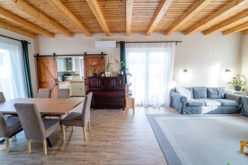 Mikepércs központjának közelében eladó egy 2023-ban épült, szinte új, nagyon szép állapotú, bruttó 125 m2-es, földszintes, nappali-amerikai konyha + 4 külön nyíló szobás, önálló, dupla komfortos családi ház, mely 1000 m2-es telken helyezkedik el. A telek adottságok lehető teszik a megosztását, így a későbbiekben eladható vagy beépíthető.Az ingatlan étkezős-konyhás-nappalival, 4 szobával és 2 fürdőszobával 4 wc-vel rendelkezik, így rendkívűl ideális választás családok számára is. A tágas nappali világos és barátságos légkört teremt, amely tökéletes helyszíne a közös családi pillanatoknak. A ház prémium kivitelezésének köszönhetően nemcsak esztétikai élményt nyújt, hanem a fenntarthatóságra is nagy hangsúlyt fektet. Passzívház elvekhez közelinek tervezett otthonban gáz (cirko) fűtés és klímás hűtés biztosítja a kellemes hőmérsékletet egész évben. Az épület kiváló minőségű anyagok felhasználásával készült, így garantálja az új lakók számára a tartósságot és az alacsony fenntartási költséget.Az ingatlanhoz tartozik egy 17 négyzetméteres terasz, ahol a szabadban való pihenés és szórakozás élménye egyaránt garantált. A beépített bútorok és szekrények, valamint a LED hangulatvilágítás pedig a modern életvitel kényelmét szolgálja. További tulajdonságai:- 38 m2-es nappali-étkező-konyha- 4 külön nyíló szoba, laminált parketta burkolattal- 3 rétegű üveggel szerelt, hőszigetelt műanyag nyílászárók- Porotherm 30 K tégla + 15 cm hőszigetelés, 40 cm födémszigetelés- Bramac cserép héjazat- Modern, gépesített konyhabútor, újszerű gépekkel- Padlófűtés- A fedett előtér mellett 17 m2-es hátsó terasz kapcsolódik a nappalihoz- 2 nagy méretű fürdőszoba, igényes burkolatokkal, WC-vel, káddal és zuhanyzóval- Külön WC kézmosóval- Járható, pakolható padlástér- Nappaliban kandalló beállítási lehetőség ( SCHIEDEL kémény)- LED lámpák és LED-es rejtett világítás- Szuper alacsony rezsivel fenntarthatóEgy otthon, ahova csak költöznie kell!ENGEDJE EL AZ ÉPÍTKEZÉSSEL JÁRÓ NEHÉZSÉGEKET, VÁSÁROLJON TELJESEN KÉSZ CSALÁDI HÁZAT KEDVEZŐ ÁRON!A környék ellátottsága kiváló, hiszen a közeli üzletek, iskolák és egészségügyi intézmények mindössze néhány percnyi távolságra találhatók. Azoknak, akik szeretik a kertvárosi, barátságos környezetet, és fontos a belváros közelsége is.Hívjon, és egyeztessünk időpontot a megtekintéshez!Az ingatlanról teljes körű videó felvétel készült, a megtekintése érdekében weboldalunkon keresse a H513517 regisztrációs számon vagy keressen telefonon közvetlenül.