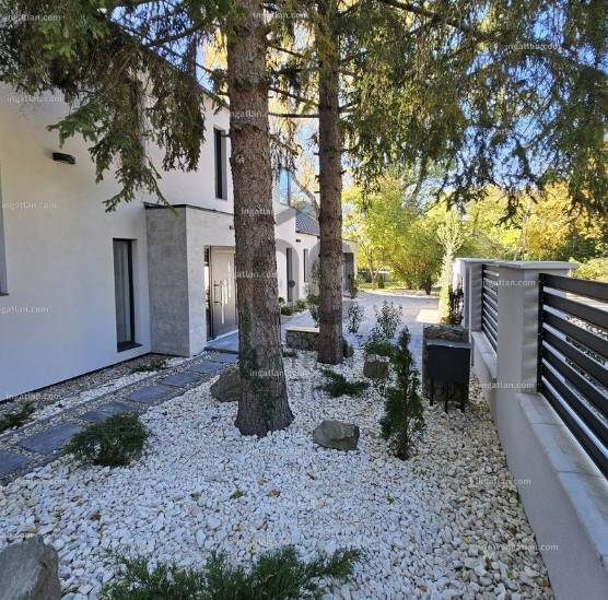 Fedezze fel ezt a kivételes lehetőséget Szentendre, Pismány városrészében, ahol egy új építésű, idén elkészült, modern ház várja Önt és családját.Az ingatlan a legmagasabb minőségi elvárásoknak megfelelően készült, közel 240 négyzetméteres alapterületén a nagyméretű világos nappalin, konyha-étkezőn, két fürdőszobán, mosókonyhán felül, 4 szoba és gardrób, plusz egy dolgozó sarok várja családjával.A nagyméretű, majdnem teljesen sík telken, ősfák és tudatosan telepített, gondozott örökzöldek, valamint a telek végében csordogáló patak adják a telek hangulatát. A békés, patakparti környezet, a madárcsicsergés, a friss levegő és a zöld panoráma, minden nap feltölti energiával, a tiszta, friss levegő sétára, futásra, túrázásra kerékpározásra csábítja.A ház tervezésekor, majd kivitelezése során a telek egyedi alaprajzának adottságait és meglévő növényzetének megóvása mellett az új növényzet telepítése is kiemelt szerepet kapott. Az újépítésű, Ytong falazatú, hőszivattyús fűtésrendszerrel ellátott épület, korszerű hőszigeteléssel, nyílászárókkal és energiatakarékos megoldásokkal biztosítja a kellemes klímát és az alacsony fenntartási költségeket egész évben. A zöldre néző nagy üvegfelületek beengedik a fényt, miközben a tágas, kertkapcsolatos nappali, a stílusos étkezővel és a nagyméretű terasszal a kényelmet és az eleganciát ötvözik.Több, mint 1000 négyzetméteres telkével ideális választás mindazok számára, akik a városi élet nyüzsgésétől távol, mégis könnyen megközelíthető helyen szeretnének élni. Az ingatlanban öt tágas szoba található, amelyek lehetőséget adnak a családi életre, valamint vendégek fogadására. A két fürdőszoba kényelmet biztosít a mindennapok során, így a reggeli rohanásban sem kell kompromisszumot kötnie. A közel 50 négyzetméteres terasz tökéletes helyszín a pihenésre, ahol élvezheti a gyönyörű panorámát, amely a környék varázsát tükrözi. Az újépítésű ingatlan a hőszivattyús fűtés és a klímaberendezés pedig garantálja a kellemes hőmérsékletet télen és nyáron egyaránt. A garázsban egy autó kényelmesen parkolhat, ezen felül a telken további két autó is elfér, így nem kell aggódnia a parkolási lehetőségek miatt.A környék csendes és biztonságos, ideális választás családok számára. Szentendre számos lehetőséget kínál a szabadidős tevékenységekre, legyen szó kirándulásokról, kerékpározásról vagy a helyi éttermek és kávézók felfedezéséről vagy kulturális élményekről, eseményekről. A közlekedési lehetőségek is kiválóak, hiszen a város könnyen megközelíthető autóval, de a tömegközlekedés is jól kiépített, így Szentendre és Budapest között gyorsan és kényelmesen közlekedhet. A családbarát ingatlan a természet nyugalmát és a városi kényelem közelségét kínálja, egyszerűen megközelíthető, csendes utcában, mégis percekre a városközponttól, óvodától, iskoláktól, üzletektől és tömegközlekedéstől.Ez az ingatlan nemcsak egy otthon, hanem egy életstílus megtestesítője, amely lehetőséget kínál az aktív, de mégis nyugodt életvitelre.