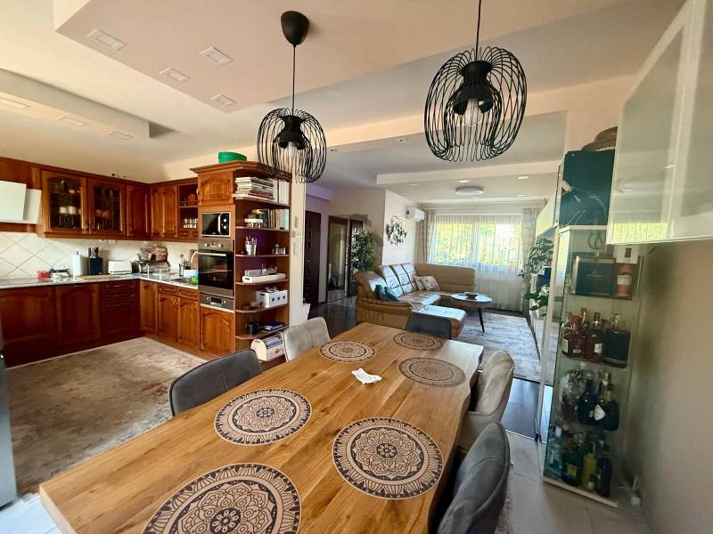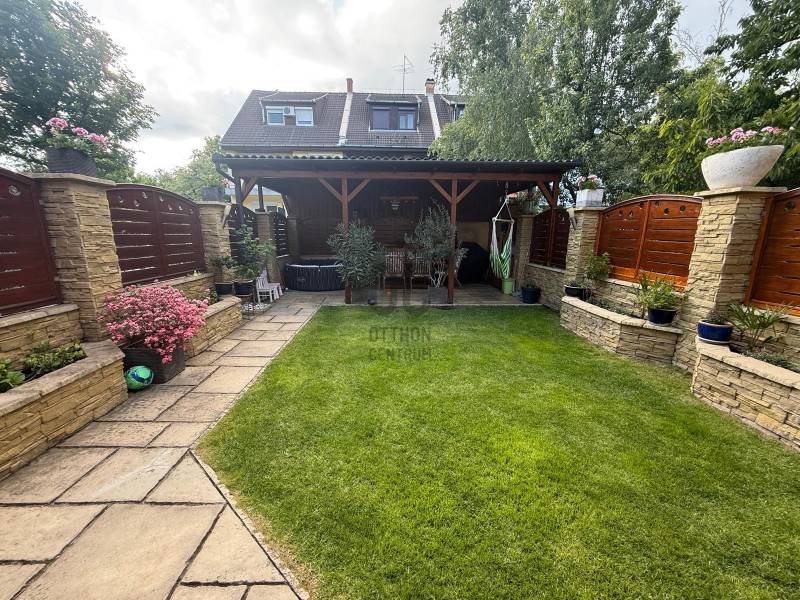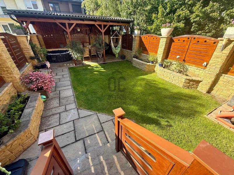 Debrecen egyik legkedveltebb, zöldövezeti részén, a Nagyerdő csendes kis utcájában eladó egy 174 nm-es, három szintes, teljes körűen felújított sorház, amely tökéletes választás családok számára.A földszinten a közös terek harmóniája található, egy modern, egybenyitott nappali - étkező - konyha kapott helyet, amely ideális szintere a mindennapi életnek és a családi összejöveteleknek. A konyha minőségi, korszerű gépekkel felszerelt, praktikus kialakítású.A nappali - étkezőből közvetlen kijárat nyílik a tágas teraszra, amely kellemes, nyugodt kapcsolatot teremt a gondozott kerttel.Az emeleten nyugodt pihenést biztosít a 3-om csendes, jól kihasználható szoba, hozzá tartozik egy stílusosan kialakított fürdőszoba.A tetőtérben egy hangulatos dolgozó és olvasósarok, valamint egy tágas szoba gardróbbal került kialakításra.Az ingatlan egyik különlegessége a szuterén szint, ahol megtalálható mosóhelyiség, tárolóhelyiség, itt kapott helyet egy infra szauna a mindennapi feltöltődéshez. A garázs elektromos kapuval ellátott, fűtött és két gépkocsi beállásra van lehetőség.Műszaki tartalma:- Teljeskörű felújítás- Megújult víz és villanyvezeték hálózat - 2 kamrás, 3 rétegű üvegezésű, fa hatású műanyag nyílászárók- Redőny és rovarháló minden ablakon- Riasztórendszer- 2 kw-os napelemrendszer- 5 db klíma a kellemes hőmérsékletért- 10 cm homlokzati szigetelésAz ingatlan kiváló választás azok számára, akik csendes, zöld környezetben, mégis Debrecen egyik legértékállóbb részén szeretnének élni.