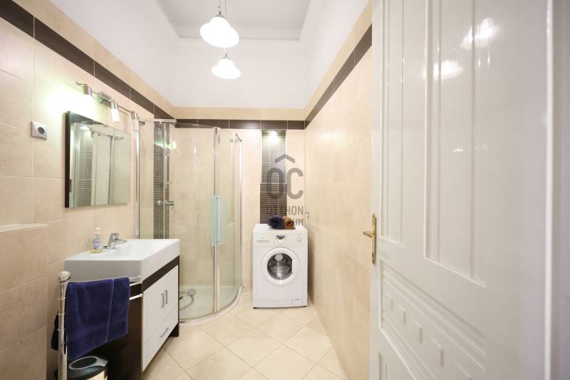 Polgári Elegancia a Falk Miksa utcábanEladó az V. kerület legimpozánsabb részén, a galériák utcájában egy teljes körűen felújított, 53 m²-es, nappali + hálószobás exkluzív ingatlan. Az épület kívül-belül kifogástalan állapotú, liftes ház, melynek lépcsőháza és közös területei két éve teljes esztétikai és műszaki megújuláson estek át.Fény és Tájolás:A lakás kivételes adottsága az átmenő napfény, amely élettel telivé teszi a tereket:Keleti tájolású nappali: Reggelente természetes fényben úszik.Nyugati fekvésű hálószoba: Csendes pihenést és kellemes délutáni világosságot biztosít.Műszaki tartalom és felszereltség:Teljes körű megújulás: A felújítás során a teljes villamos hálózat cseréje megtörtént,megfelelve a legmodernebb technikai elvárásoknak.Maximális komfort: A legmodernebb, láthatatlan mennyezeti hűtés-fűtést Daikin hőszivattyús rendszer rendszer biztosítja alakás optimális hőmérsékletét. Geotarifás mérő óra van felszerelve a kedvező tarifáért.Szigetelés és biztonság: Új, Hofstadter 3 rétegű üvegezéssel ellátott nyílászárók a tökéletes csendért, részben motoros redőnyvalamint prémium 6 pontos biztonsági bejárati ajtó.Álomkonyha: Olaszországból érkezett, egyedi tervezésű konyhabútor,beépített Siemens gépekkel és Liebherr hűtővel.Fűrdőszoba:A mediterán fürő minőségi Hüppe zuhanykabinnal és Hansgrohe csaptelepekkel lett ellátva.A társasház és a tárolás részletei:Saját tároló: Az ingatlanhoz tartozik egy saját pinceszinti tároló. Fontos kiemelni, hogy atársasház felújítása során a pinceszint is teljes műszaki megújuláson esett át, így az tisztaés rendezett állapotú.Gondozott udvar: A lakók nyugalmát egy hangulatos szökőkút és térkővel burkolt,tiszta és esztétikus belső udvar biztosítja, ahol biztonságos kerékpártároló is rendelkezésre áll.Lokáció és Életérzés:A lakás elhelyezkedése kiváló: a Parlament, a Duna-part és a kikapcsolódást nyújtó Margit-sziget is kényelmes sétatávolságra található. Ez az ingatlan kompromisszummentes életteret kínálBudapest szívében, egy patinás, galériákkal övezett, biztonságos környezetben