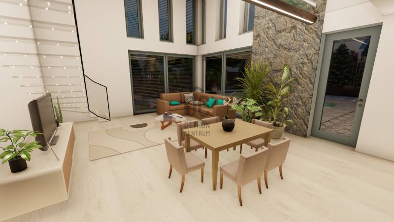 Ez az ingatlan nem mindenkinek szól. Csak annak, aki pontosan tudja, mit akar!Van egy pont az életben, amikor már nem akarod hallgatni a forgalom zaját. Nem vágysz már liftre, szomszédra, parkolóhely-keresésre. Inkább a saját kerted illatát szeretnéd érezni. A csendet. A tér szabadságát. Egy édeni kis faluban, ahol a csend maga a luxus, ahol a természet közelsége nem lemondás, hanem kiváltság – itt épül meg ez a prémium villa, amely nem csupán egy ingatlan, hanem egy életminőségi szintlépés. Egy választás azoknak, akik tudják: a valódi luxus nem hivalkodik – csak jelen van. Finoman. Magabiztosan.Ez nem ház. Ez egy életérzés. Egy korty szabadság nap mint nap. 30 percre Budapesttől, de világokra a zajtól. Itt a csillagokat is látni. Saját medence, saját kert – minden a tiéd. Aki ide jön, nem véletlenül talál rá. A ház, a kert, a látvány és a kivitelezés beszél helyetted. Ez nem egy újabb agglomerációs ikerház. Ez a hely különleges. Ahogy te is. „Új életmód: minden nap olyan, mintha nyaralnál.”Belső terek, ahol az anyagok nem csak szépek – hanem mesélnek. A Porcelanosa Orobico Dark kőburkolatú nappali hangsúlyfala olyan, mint egy festmény: selymesen fénylő, drámai textúrával. A MIRAGE Tavernit padlólapok természetes meleg tónusú, olasz prémium greslapok – rusztikus eleganciájuk átfogja az egész házat.A mennyezetet Shou Sugi Ban technikával kezelt lakkozott fenyő rönkök tartják, köztük rejtett LED világítással. Nem dizájnelem – karakter.Az üveglépcső feketefém rögzítéssel és süllyesztett LED-spottal minden este új fényjátékot játszik. Az üveg padlójú galérián állva úgy érezheti lebeg a nappali felett.A padlószőnyeg a hálókban szállodai minőségű – csak az tudja, mit jelent ez, aki mezítláb jár benne.A konyha egyedi gyártású, szigetes 18mm vtg Egger H1330 ST10 Santa Fe Laminált Tölgy Vintage frontlapokkal, Slim Line kvarc kompozit 12mm vtg. Egger Kompakt, Pietra Grigia Fekete munkalappal.Dupla Marmy Bergamo mosdók, VOVO okos-WC – nem extra, hanem alap.Antracit színű alumínium nyílászárók, 3 rétegű üvegezéssel, motoros zsalúziával és szúnyoghálóval – mert a csendnek ára van.Energetikai függetlenség – napelem + energiatárolás. Smart vezérlés: mikor fűt, mikor tárol, mikor táplál vissza „Ez az otthon nem fogyaszt – gondoskodik magáról.”Mennyezeti hűtés-fűtés hőszivattyúval, légtechnikai rendszerrel – láthatatlan minden, csak komfortot lehet érezni.Frisslevegő-szabályozás magasabb szinten. Szenzor vezérelt légcsere CO₂, VOC, pára alapján automatikus bypass nyitás hűvös éjszakákon (passzív free cooling), zónás szellőztetés, ha a lakók külön élettérben tartózkodnak.Smart Home vezérlés – minden ott van, ahol kell, és pontosan akkor, amikor kell.„A hőmérséklet nem csak egy szám – itt a komfortot az érzékelés vezérli.”Kert, ami estére életre kel.Tavernit burkolatok a medence körül – csúszásmentes, természetes hatású felület.Saját, hőszivattyús fűtésű medence – nemcsak látvány, hanem élmény.Kettős zónás öntözőrendszer, automata tápadagolással – a kert önmagát gondozza.Fel-le sugárzó LED homlokzatfények – este a ház új arcát mutatja.A magas, zárt kerítés teljes intimitást biztosít – mégis nyitott a térre, a fényre, a levegőre. Itt egyszerre élhető meg a társasági élet öröme és a magányos nyugalom méltósága.Ez nem lakás. Ez státusz. Ez önazonosság. - Nem kérdés, hogy megéri-e. Csak az, hogy Ön lesz-e az, aki megengedi magának.