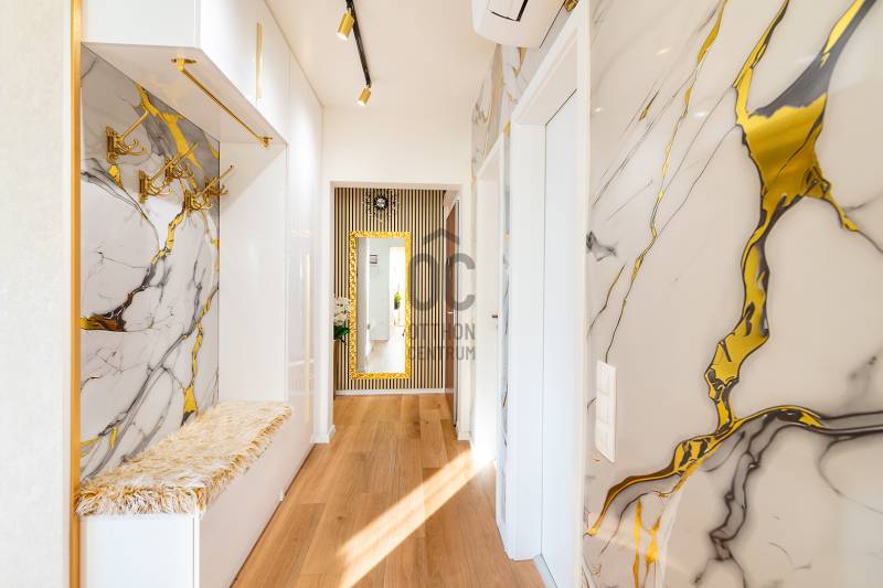 3 szobás exkluzív otthon a Marina partonRendkívül igényes minőségű és kivitelezésű, nappali + 2 hálószobás otthon eladó, 61 m2 + 14 m2 terasz elosztással.A Marina part II-es ütemében épült társasház 8. emeletén található a lakás, a Dunára és az újpesti öbölre is részpanorámával bír.Kerti nézetű, DNY-i tájolású.A lakás 2025 őszén fel lett újítva, minek keretében a új konyhabútort és fürdőszoba bútort kapott. Egyedi okosotthon vezérlés a lakásban, nagyszámú szabályozási lehetőséggel.LAKÁS:Nappali: minőségi bútorok, Samos TV-hifi rendszerKonyha: WiFi-s megoldások, Flex Zónás főzőlap, gőzsütő, borhűtő...Nyílászárók: fa nyílászárók, elektromos rolós rendszerrel kiegészítve, szúnyoghálókkalFürdőszoba: mosó-szárítógép, kád és sok tároló szekrény Fényerőszabályzós világítási rendszer, számos új beépített szekrény.Fűtési rendszer: házközponti fűtés és fűtés. Itt 3 db Daikin professzionális klíma is beépítésre került, egyedi szűrőrendszerrel.Terasz: élhető méretű 14 m2-es, műfűvel ellátva a nagyobb komfort érdekébenTeremgarázshely: a lakáshoz 2 teremgarázshely tartozik (+8.35 M Ft/db áron).LOKÁCIÓ: a Dunától 1 perc sétára található, remek közlekedési, sportolási és kikapcsolódási lehetőségekkel Budapest egyik legkedveltebb kerületébenTÁRSASHÁZ: gondozott kerttel, 0-24 órás portaszolgálattal rendelkezik. 2 lift növeli tovább a kényelmet.Tehermentes ingatlan, rugalmas birtokbaadási lehetőséggel.Az ingatlan ára a komplett bútorozást is tartalmazza.Kérdéseivel kérem keressen bizalommal !