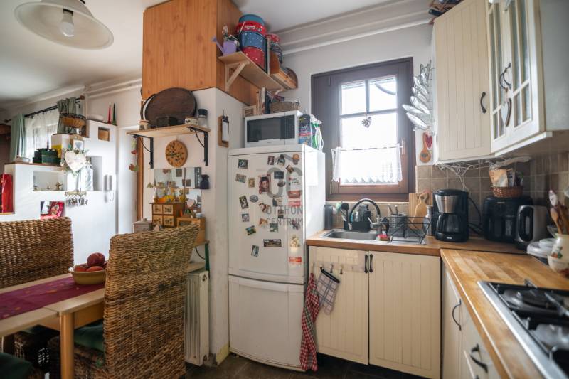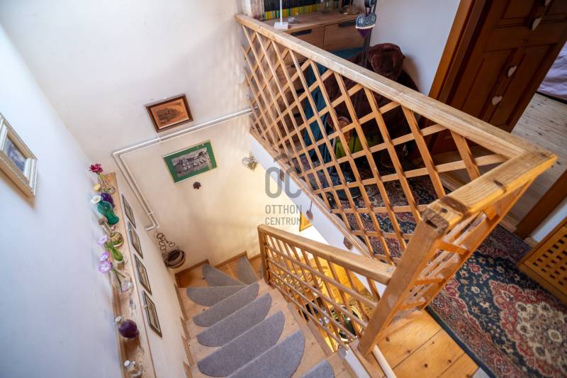 Eladásra kínáljuk gondosan karbantartott, kétszintes, sorház jellegű családi házat Budakeszi egyik legszebb és legkeresettebb részén, Virágvölgy csendes utcájában, a 12. kerület határán, közvetlenül az erdő szomszédságában.Az ingatlan a város északkeleti határán, a hajdani villa-üdülő övezetben, kiemelt presztízsű környezetben, a János-hegy közvetlen közelében helyezkedik el – ideális választás azok számára, akik a természet közelségét és a városi elérhetőséget egyaránt fontosnak tartják.Főbb paraméterekLakóterület: 95 m²Elrendezés: nappali + 3 külön nyíló szobaÉpület: 2 szintes, sorház jellegű (nincs közös fala a szomszéd ingatlannal)Földszint:előszobavilágos nappali valódi fatüzelésű kandallóvalkonyha - étkezőkádas fürdőszoba - wcteraszTetőtér:2 hálószoba (egyik hűtő-fűtő klímával)félszoba+ padlás tárolásraMűszaki és állapotAz ingatlan néhány éve belső felújításon esett átEgyedi fa nyílászárók, 3 kamrás üvegezésselBiztonsági zárral ellátott bejárati ajtóTetőtéri ablakok működőképesek, esztétikai felújítást igényelnekTisztasági festés után beköltözhetőKert és telekIntim, körbe kerített saját kert, ideális pihenésreOsztatlan közös tulajdonú telek, ügyvédi megosztássalKözművek – fontos információA vízvezeték-rendszer 2025 nyarán részben szétválasztásra kerültA külön csövek már lefektetésre kerültek, bekötésük és az önálló vízórák telepítése szükséges a teljes leváláshozJelenleg egy új közös gerincen történik az ellátásElhelyezkedés és közlekedésRendezett, aszfaltozott utcában, a városközponthoz közel.Parkolás a telken belül. Tömegközlekedés: Budapest–Budakeszi határán, kiváló elérhetőség:22, 22A, 222, 188, 188E és távolsági buszok 6-7 perc sétaSzéll Kálmán tér kb. 20 perc alatt elérhetőBevásárlás, gyógyszertár, orvos, éttermek ~5 perc sétára