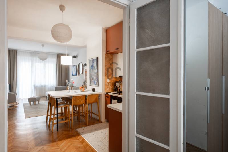 Kiváló adottságú, kéterkélyes lakás eladó a VI. kerület közkedvelt részén, pár perc sétára az Andrássy út-tól.Az ingatlan kelet–nyugati tájolásának köszönhetően egész nap világos, remekül átszellőztethető, alaprajza praktikus és jól élhető. A tulajdonosok saját részre, igényesen újították fel, minőségi és tartós megoldásokkal.A külső nyílászárók cseréje megtörtént (prémium bejárati ajtó, korszerű, passzívház-minőségű ablakok). A fűtésrendszer modern, energiatakarékos Daikin hőszivattyúra lett cserélve, amely hűtésre-fűtésre egyaránt alkalmas. Az elektromos hálózat rézvezetékes, részben megújított.A konyha egyedi kialakítású: részben IKEA elemekből, részben asztalos által készített bútorokkal, minőségi frontokkal, modern gépesítéssel (wifi-képes sütő, kerámia mosogató).A felújítás közel teljes körű, a fürdőszoba esztétikai frissítése, a kisszoba burkolása, valamint egy tisztasági festés az új tulajdonos igénye szerint alakítható.Az épület mindössze 8 lakásos, saját kerttel rendelkezik, amely ritkaság a környéken. A ház teljes felújítása előkészített, a szükséges engedélyek és árajánlatok rendelkezésre állnak. A tervek szerint homlokzati szigetelés és további korszerűsítések valósulnak meg, amely az ingatlan értékét tovább növeli.Az elhelyezkedés kiváló: az Oktogon 8 perc, a Városliget kb. 13 perc sétára található. A környék infrastruktúrája és közlekedése kiemelkedő, így saját otthonnak és befektetésnek egyaránt ideális választás.További információért és megtekintésért keressen bizalommal!