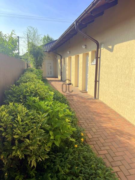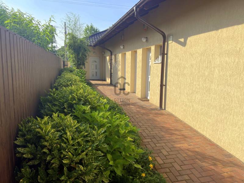 Eladó Fóton, a Kisalag körzetben egy 198nm-es, 4 lakás + gazdasági épület, ami összesen 7 szobás, jó állapotú önálló családi ház 711nm-es telekkel!Kiemelt és impozáns környéken eladóvá vált egy igazán egyedi ajánlat, ami csak új nagy családját vagy befektetőjét várja!+ Jó állapota révén felújítást nem igényel, akár festés után birtokba vehető és minden igényt és kényelmet biztosít.+ Jelenleg is mindegyik lakrészben bérlők vannak, akik 4-5 éve laknak itt és továbbra is maradnának, ha igény van rá. A pontos hozam miatt hívj fel!+ Ha több generációs házat keresel, vagy több apartmanra van szükséged amit akár lakhatsz és ki is adhatod őket, akkor ezt kerested!+ 2020-ban a külső falaktól kezdve lett teljesen újjá építve az egész épület, ami érintette a műszaki, esztétikai és szerkezeti részeket és a teljes tető cserét is.+ Kívülről 12cm szigetelést és felülről 30cm födém szigetelést kapott.+ Mindegyik lakrész saját terasz kapcsolatos, teljesen felszerelt és berendezett, ami a vételár részét képezi.+ Minden egység saját víz és villany almérővel rendelkezik. A fűtésük Breha fűtőpanelokkal és hűtő-fűtő klímákkal megoldott és a tetőre került 15KW napelem, hogy egész évben minimális legyen az áram fogyasztás.+ További extrák: Automata öntözőrendszer fúrt kúttal és esővíz-pufferelvezetéssel,riasztó és kamera rendszer, 5db autó beálló a telek elején, kaputelefon rendszer, wifi okos rendszer.+ Ha ez még nem lenne elég, a telek végében egy további külön álló épület is helyet kapott, ami jelenleg jóga stúdió, de úgy lett megépítve, hogy könnyen lakhatásra lehessen használni.+ A buszmegálló mindössze 9 perc sétára található (308,309,310,311). Bevásárlási lehetőség, orvosi rendelő, általános iskola, több étterem, cukrászda is 8-12 percen belül elérhető.+ A ház jogilag rendezett, tehermentes, \"kivett lakóház, udvar\" megnevezésű és önálló helyrajzi számmal rendelkezik, így hitelezhető, de a térképszelvény még véglegesítés alatt van!Rengeteg apró érv szól még emellett az egyedi és ritkán megtalálható ház/apartman ház mellett, de azt javaslom, inkább gyere el és szeress bele te is!Megígérem, a minőségben nem fogsz csalódni és hosszú távon is nagyon jól jársz vele!