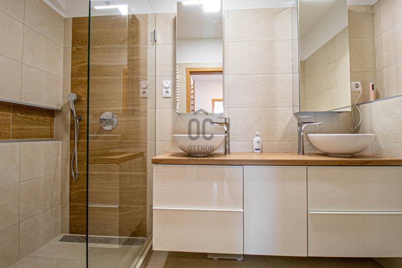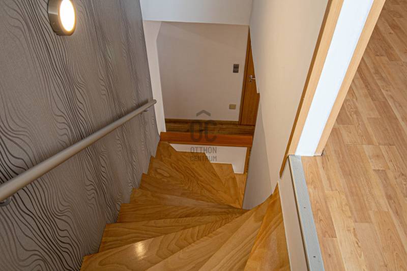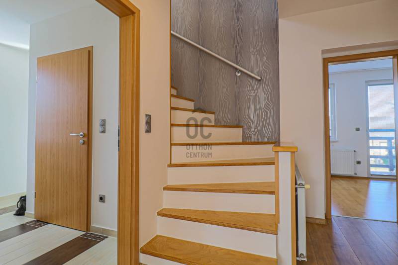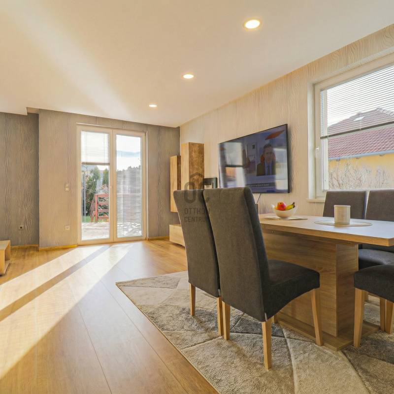 A Pihenőkereszt lakóparkban kínálok megvételre egy kiváló állapotú, igényesen felújított ikerházat. A nyugodt környezet, a panorámás kilátás és a tágas, világos terek teszik ezt az ingatlant igazán különlegessé.Főbb jellemzők:- 3 szintes otthon átgondolt, kényelmes elrendezéssel.- Alsó szint: fűtött garázs, iroda vagy hobby szoba, külön wc, mosókonyha. A garázsból közvetlen feljárás biztosított a lakószintre.- Földszint: előszoba, kamra, hálószoba saját erkéllyel, fürdőszoba, valamint egy teraszkapcsolatos, tágas amerikai konyhás nappali, amely a családi élet központja lehet.- Felső szint: tágas közlekedő, 3 külön bejáratú hálószoba, fürdőszoba és egy különálló wc.Kiemelt extrák és műszaki felszereltség:- Az ingatlan kifogástalan belső állapotú, a felújítás 3 éve valósult meg, és szinte azonnal birtokba vehető.- A gondozott 454 m2- es kertben kiépített öntözőrendszer és kerti sütögető gondoskodik a kikapcsolódásról.- Modern riasztórendszer a biztonság érdekében.- Központi porszívó, amely a mindennapi takarítást teszi kényelmesebbé.- Az emeleti hálószobák klimatizáltak, így a nyári hónapokban is kellemes hőmérséklet biztosított.- Újszerű kondenzációs gázkazán gondoskodik a gazdaságos és hatékony fűtésről.Miért érdemes ezt az otthont választani?A ház kiváló elosztásának és panorámás elhelyezkedésének köszönhetően ideális választás családok számára, akik értékelik a tágas tereket és a modern kényelmet. A nyugodt környezet biztosítja a pihenést, míg a gyorsforgalmi út és a nagyobb élelmiszer boltok közelsége könnyen elérhetővé teszi a mindennapi teendőket.Ne hagyja ki ezt a lehetőséget! Az ingatlan minden igényt kielégít – komfort, minőség és nyugalom egy helyen.Keressen bizalommal a részletekért és a megtekintésért!Keressen bizalommal a megtekintésért!Hitelre van szüksége?Az Otthon Centrum az ország egyik legnagyobb és legmegbízhatóbb hitelközvetítőjeként, teljes körű és díjmentes hitelügyintézéssel, biztosításkötéssel áll rendelkezésére!Kérje személyre szabott ajánlatunkat Kollégáinktól!