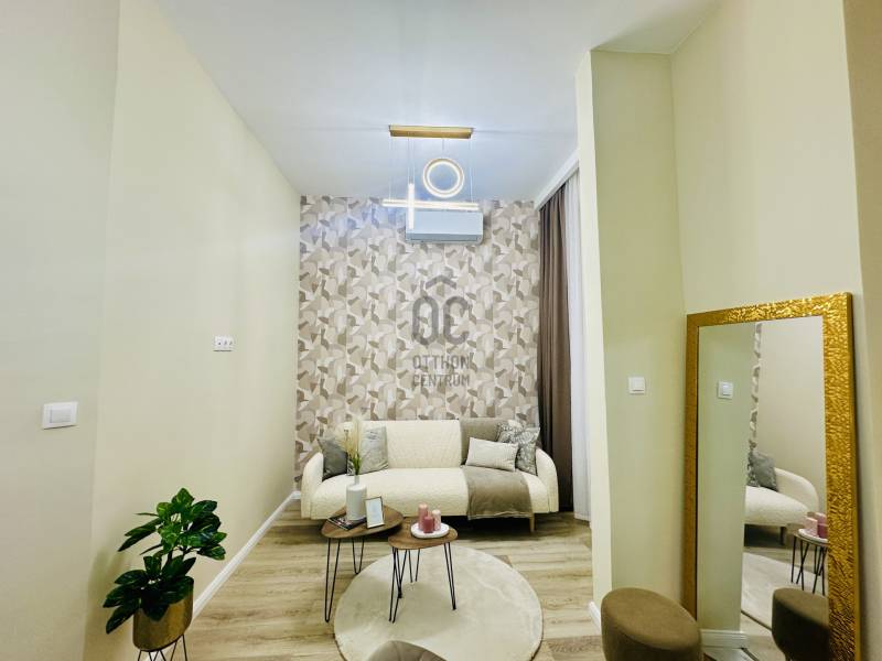 Ritka lehetőség Budapest szívében – felújított polgári lakás a Klauzál térenEladó Budapest VII. kerületében, Belső-Erzsébetváros egyik legkedveltebb részén, a Klauzál téren egy 40 m²-es (tulajdoni lapon 36 m²), teljes körűen és igényesen felújított, dél-nyugati tájolású, világos polgári lakás.Az ingatlan egy kulturált, szépen karbantartott társasház első emeletén található, önálló helyrajzi számmal rendelkezik, azonnal birtokba vehető.A lakás amerikai konyhás nappalival, külön hálószobával és fürdőszobával rendelkezik. Az elrendezés praktikus, élhető tereket biztosít. A felújítás során minden burkolat cserélve lett, a víz- és villanyvezetékek megújultak, az aljzat födémig visszabontásra került és új betonréteget kapott. A modern, fiatalos esztétikai kialakítás időtálló, mégis karakteres hangulatot teremt.A lakás egész délelőtt természetes fényben fürdik a dél-nyugati tájolásnak köszönhetően. A fűtésről hűtő-fűtő klíma és energiatakarékos elektromos fűtőpanel gondoskodik. A közös költség 16.200 Ft, amely korlátlan vízfogyasztást tartalmaz.A konyha modern, minőségi gépekkel felszerelt – ide valóban csak költözni kell.A társasház rendezett, megtakarítással rendelkezik, a tető nemrég felújításra került. Az udvar növényesítése önkormányzati pályázat keretében valósult meg, ami tovább emeli az épület színvonalát.Elhelyezkedése kiemelkedő: a Klauzál tér éttermei, kávézói közvetlen közelben találhatók, miközben a lakás nyugodt környezetet biztosít. A Blaha Lujza tér és az Erzsébet körút pár perc sétára elérhető, így a város bármely pontja gyorsan megközelíthető.Ideális választás első lakásnak, fiatal párnak vagy értékálló befektetésnek. Frekventált elhelyezkedése miatt könnyen és gyorsan kiadható.Az ingatlan önálló helyrajzi számmal rendelkezik, azonnal birtokba vehető.Igény esetén videót is tudok küldeni.Egyedi igényekre szabott lakáshitelekkel állunk rendelkezésére.Bankfüggetlen Hitelcentrumunk az országban elérhető összes bank és hitelintézet ajánlatát versenyezteti az Ön számára díjmentesen.Munkatársaink nagy szakmai tapasztalattal, teljes körű CSOK PLUSZ és OTTHON START PROGRAM ügyintézéssel várják Önt előre egyeztetett időpontban akár a normál munkaidő után is.