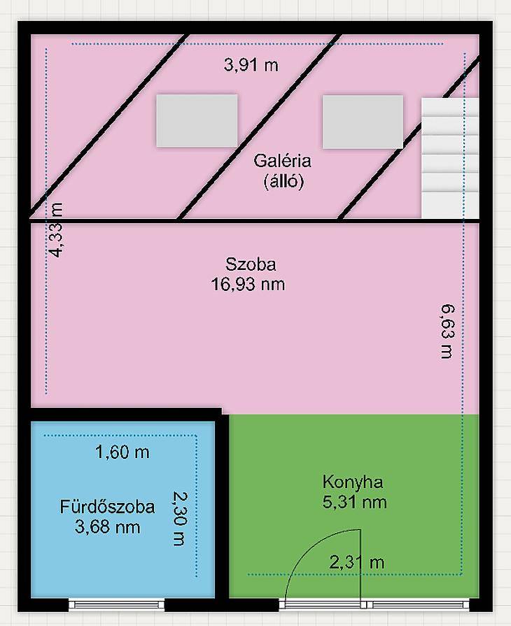 Újpesten, a Bródy Imre Gimnázium közelében, csendes mellékutcában, 5 lakásos udvarban, újépítésű, 23 nm-es, 1 szoba+álló galériás kialakítású téglalakás, autóbeállási lehetőséggel. Az ingatlan 1/1-es tulajdonban van, per-teher és igénymentes. Átadási ideje: 60-90 nap. Közös költsége: 5.000.- Ft.A lakás 2025-ben épült, jelenleg még tartanak a munkálatok. Az építés során új falakat és tetőt húztak fel, újak a lécek, gerendák, csatorna. Beton alapzattal rendelkezik. Kívülről 10 cm-es szigetelést kapott. Belül jelenleg a gipszkartonozási munkafolyamat zajlik. A szobába laminált padlót fognak lehelyezni, a többi helyiséget járólappal fogják burkolni. Fürdőszobájában zuhanyzót alakítanak ki. A fűtésről inverteres légkondicionáló berendezés fog gondoskodni, amit kifejezetten fűtésre optimalizáltak. Belmagasságának köszönhetően a hasznos alapterületet ( 4,5 nm-es álló) galéria kialakításával növelték. Az udvarban térkövezett autóbeállási lehetőség biztosított 1 gépjármű számára. Pár percen belül Penny, Tesco, Praktiker, óvoda, iskola, kisbolt és egyéb más szolgáltatások, valamint a Népsziget-öböl is percek alatt elérhető.A közelben megtalálható a 147-es, 104-es, 204-es, 196-os busz megállója. Újpest-központ és az M3-as metróállomás tömegközlekedéssel 5 percen belül elérhető. A belváros autóval és tömegközlekedéssel egyaránt rövid időn megközelíthető.A hirdetésben szereplő adatok tájékoztató jellegűek! Egyes ingatlanjaink esetében csere és ingatlanbeszámítás is lehetséges. Továbbá ügyfeleink részére keresünk eladó ingatlant, tulajdonrészt, vagy haszonélvezeti joggal terhelt ingatlant Budapesten és az agglomerációban. A részletekről kérjük érdeklődjön telefonon.Bankfüggetlen hiteltanácsadóink az ország összes pénzintézete közül gyorsan és gördülékenyen találják meg az Önnek legmegfelelőbb konstrukciót, egyedi, személyre szabott kedvezményekkel. A KÖZVETÍTÉS VEVŐINK RÉSZÉRE DÍJMENTES!