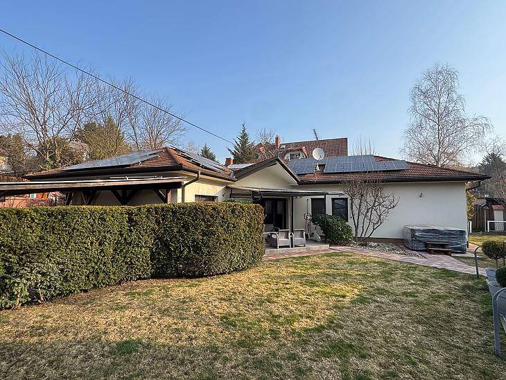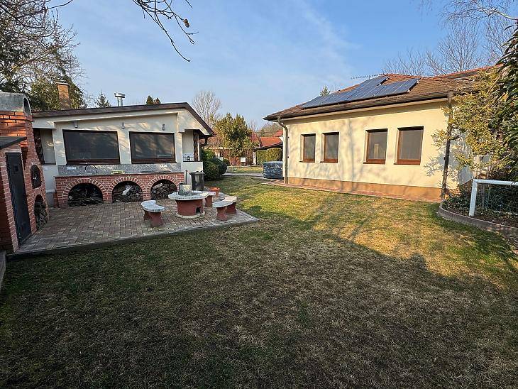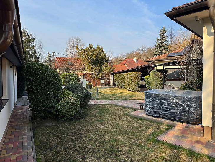 ÜRÖMÖN, A VÖLGYLIGETBEN ELADÓ EGY KIVÉTELES, TELJESKÖRŰEN FELÚJÍTOTT, FÖLDSZINTES CSALÁDI HÁZ!Telek mérete: 920 nmA KÖRNYÉKBudapest közvetlen határában, kiváló adottságokkal rendelkező, igényes családi házas övezetben található. Fiatalos környezet, tágas, karbantartott utcák, kedves és összetartó lakóközösség jellemzi.A buszmegálló 8 perc (550 m), a vasútállomás 11 perc (750 m) sétára érhető el. Az ürömi Lidl autóval 4 perc, gyalogosan kb. 12 perc.A HÁZ JELLEMZŐI-A telken két épület található: Főépület: 168,28 nm Kisház: 44,62 nm-Plusz 17,48 nm-es fedett terasz-Plusz dupla beállásos, fedett kocsibeállóFŐÉPÜLET-2000-ben épült, 38 cm vastag POROTHERM téglából, 10 cm-es Dryvit szigeteléssel-2021-ben teljes körű felújításon esett át-Kerámiacseréppel fedett tető, monolit vasbeton födém 15 cm szigeteléssel-Előkészítve egy további szint ráépítésére-3 rétegű műanyag nyílászárók, kívül-belül fahatású kivitelben-Szúnyoghálóval és elektromos redőnnyel felszerelve-Fűtés: tartályos, kondenzációs kombi kazán-Padlófűtés, a szobákban radiátorok-1 db 5,3 kW-os LG inverteres klíma + 2 db Daikin klíma-47 db napelem, melyek fedezik az ingatlan teljes áramfogyasztását, valamint 2 elektromos autó töltését-Kamerás kaputelefon, infraérzékelők, éjjellátó kamerás riasztórendszer-A vizes helyiségekben mozgásérzékelős üvegajtók-Szülői hálószoba saját gardróbbal és fürdőszobával-Plafonba épített hangrendszer-A nappali nagy tolóajtóval rendelkezik, közvetlen kertkapcsolattalKISHÁZ (44,62 nm)-2000-ben épült, 38 cm vastag POROTHERM téglából, 10 cm Dryvit szigeteléssel-2022-ben teljes körű felújításon esett át-Fűtés: kondenzációs kombi kazán-4 személyes finn- és infra szauna-3 rétegű, kívül-belül fahatású műanyag nyílászárók-Központi Daikin klímarendszerKERT-2 db fúrt kút-Kiépített öntözőrendszer-7 × 4 méteres, 140–150 cm mély medence-Jakuzzi-Épített kemence, sütögető és kerti konyhaA ház kizárólag a teljes berendezéssel együtt vásárolható meg, melynek ára: 30 millió forint.FINANSZÍROZÁSAz ingatlan tehermentes, banki finanszírozással is megvásárolható. Irodánk ingyenes hiteltanácsadással áll rendelkezésre.Vevőink részére a közvetítés díjmentes!A hirdetésben szereplő adatok tájékoztató jellegűek.