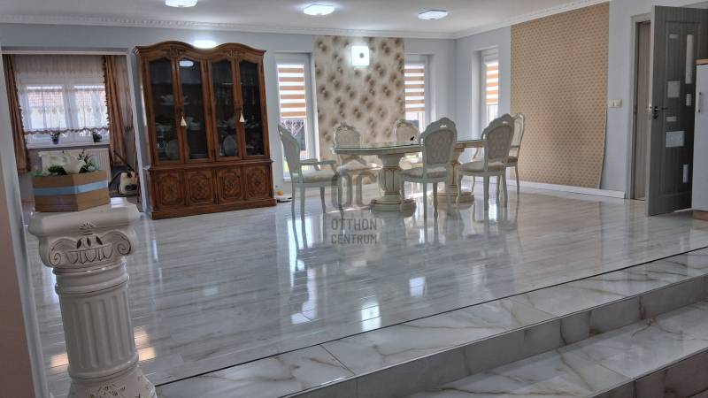 Prémium minőségű, 2025-ben épült családi otthon!Derecske kedvelt városrészén egy tágas életteret és azonnali üzleti lehetőséget kínáló modern családi ház várja új lakóit!Érdemes megtekinteni!Paraméterek:- 176 m² lakóház + 30 m² fedett terasz- a jelenlegi 3 szoba akár 5 szobává is alakítható, melyhez minden feltétel adott- Két külön lakóegység – ideális többgenerációs együttéléshez vagy bérbeadásra- Különálló, 30 m²-es üzlethelyiség, forgalmas út mellett – kiváló vállalkozási lehetőség- 1098 m²-es, rendezett telek, részben térkövezett udvarral- 2025-ben befejezett, újszerű állapot, modern műszaki megoldásokkal- Lakóház elrendezése:Tágas, világos 58 m²-es nappali–konyha–étkezőKényelmes hálószobaModern fürdőszoba és előszobaKülön bejáratú lakóegység: szoba–konyha egy légtérben, saját zuhanyzós WC-vel- Építés módozata:Az ingatlan egy stabil, hagyományos épület falain alapulva, teljes körűen kibővítve és modernizálva készült el. A ház összhatása teljes mértékben új építésű érzetet nyújt – minden burkolat, gépészet és műszaki megoldás korszerű.Komfort:- Vegyes tüzelésű kazán-padlófűtés és radiátor hőleadókkal _ gázcsonk az udvarban, az épületben is kialakítva a rákötéshez- 4 db klíma a kellemes hőmérsékletért egész évben- Laminált padló és igényes kerámia burkolatokAmennyiben a paraméterek megfelelnek Önnek, s ha egy modern, azonnal költözhető otthont keres, ahol fontos a tágas tér és a minőség, valamint vállalkozást indítana otthonról, vagy befektetési lehetőséget keres, állok rendelkezésére az ingatlan esetében!Részletekről és a megtekintésről érdeklődjön, várom megkeresését!Hajdú-Bihar, Derecske, ház, használt, eladó, 3-5 szoba, dupla komfort, újszerű