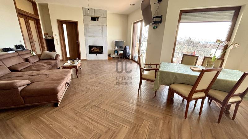 Érd egyik csendes, nyugodt utcájában kínálok megvételre egy 2024-ben épült, korszerű technológiával kivitelezett, minden részletében átgondolt családi otthont.Az ingatlan két szinten összesen 345 nm lakóteret kínál, 7 szobával, 4 fürdőszobával, két nagy méretű terasszal, hőszivattyús fűtéssel, napelemmel.Az ingatlan akár két generáció számára is kiváló lehet, hiszen szintenként külön bejárattal rendelkezikFőbb jellemzők:Alsó szint: 151 nmFelső szint: 194 nm7 szoba4 fürdőszoba WC-velDélnyugati tájolás283 cm belmagasságMonolit betonfödémAz alsó szinten egy 46 nm-es, a felső szinten egy 32 nm-es panorámás terasz biztosítja a zavartalan kikapcsolódást. A tetőteraszon jakuzzi került kialakításra – ideális esti pihenéshez vagy baráti összejövetelekhez. Szép kilátással.A 1383 nm-es, enyhén lejtő telken álló ház alapozása különösen masszív: az építés során az alap sziklára került, így stabilitása kiemelkedő.Korszerű szerkezet és technológiaAz épület ISB Építési Rendszer® technológiával készült, amely:- földrengésbiztos- tűzálló- páraáteresztő- kiváló hangszigetelőA homlokzaton további 20 cm hőszigetelés található.A tető Lindab lemezes fedésű.A szerkezet fémgerendás kialakítású.A nyílászárók háromrétegű, fa hatású Internorm műanyag ablakok.Energiatudatos és gazdaságos fenntartás.36 kW-os napelemes rendszer akkumulátoros tárolással, 2031-ig szaldós elszámolás.Korszerű hőszivattyús fűtés - PadlófűtésH tarifaVegyes tüzelésű kazán (alternatív megoldásként) és kandallóLégkeveréses, központi szellőztető rendszer minden helyiségbenAz elektromos kapus, dupla állásos garázs kényelmes parkolást biztosít.Biztonság és kényelem- Kamera- és riasztórendszer távfelügyelettel- Bevasalt, egybefüggő járda a ház mellett- Tömörfa lépcső- Felső szinten felülvilágító ablak a közlekedőbenEz az ingatlan azok számára ideális, akik nem egyszerűen házat keresnek, hanem egy hosszú távon is értékálló, modern technológiával épült, biztonságos és fenntartható otthont.Amennyiben fontos Önnek a minőség, az energiafüggetlenség és a nyugodt környezet, érdemes személyesen is megtekinteni.Várom megtisztelő hívását.