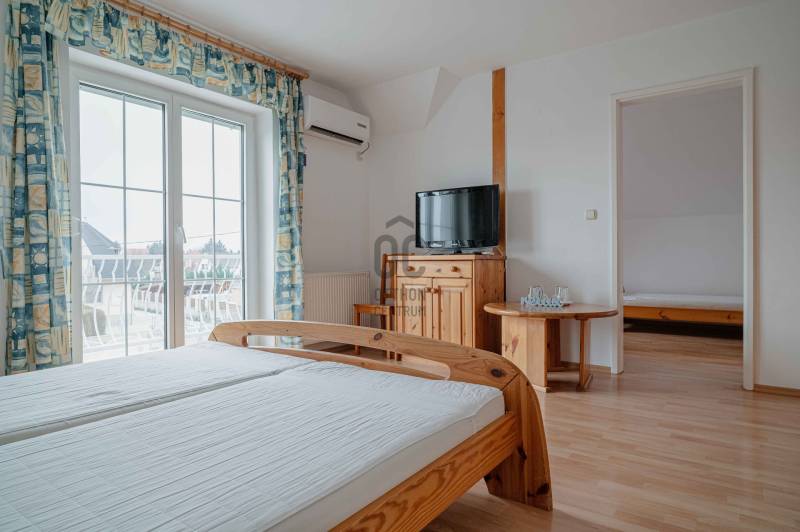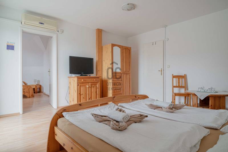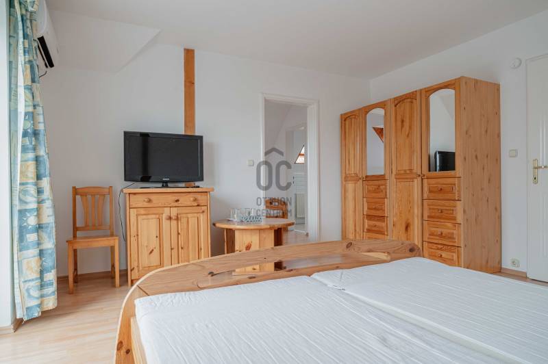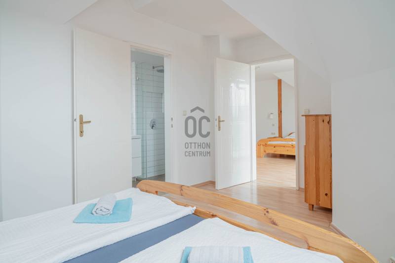 Kivételes lehetőség a Balaton egyik legkedveltebb településén! Ez a modern és energiahatékony családi ház ideális választás nagycsaládosoknak, befektetőknek vagy turisztikai hasznosításra. A kiváló lokáció, a több különálló lakrész és a prémium felszereltség garantálja az értékállóságot és a magas hozampotenciált.Lokáció – Balaton közelsége és kiváló infrastruktúra.* Mindkét strand kb. 10 perc kényelmes sétával elérhető* Nyugodt, üdülő-pihenő övezet, mégis kiváló megközelíthetőséggel* A környék ideális nyaralásra, állandó lakhatásra és kiadásra egyaránt* Közelben éttermek, kerékpárutak, bevásárlási lehetőségek* A közeli Keszthely város teljes infrastruktúrát biztosítGyenesdiás a Balaton partjának egyik legértékesebb települése, ahol a természet közelsége és a fejlett turizmus kiváló befektetési környezetet teremt.Az ingatlan főbb jellemzői.Telek és épület:* Földszint + emelet kialakítás* Teljes felújítás: 2022* Napelemes rendszer szaldós elszámolással* Központi gázfűtés + padlófűtés az alsó szinten* Minden helyiségben hűtő-fűtő klíma* Kültéri kamerarendszerFöldszint elrendezése:* Előtér* Vendég WC* Tágas nappali / étkező* Konyha* 2 hálószoba* Fürdőszoba + WC* Terasz* Mosókonyha* Elektromos kapus garázs (1 autó részére)Emelet:* 3 különálló lakrész* Lakrészenként: * 2 hálószoba * Saját fürdőszoba + WC * Saját erkélyIdeális apartmanozásra, vendégház vagy panzió kialakítására!Kültéri extrák és kert:* 6 × 10 × 1,5 m csempézett úszómedence automata vegyszeradagolással* Automata öntözőrendszer* Fedett fa kerti kiülő* Játszótér* 3 autó részére térkövezett parkoló* Külön garázsbejáró* 2 elektromos kapuBefektetési szempontból kiemelkedő lehetőség:✔ Balaton közeli elhelyezkedés – magas bérbeadási kereslet✔ Több különálló lakrész – azonnali hasznosítási lehetőség✔ Teljes felújítás – nincs további beruházási költség✔ Energiahatékony működés napelemmel✔ Kiváló ár-érték arány a lokációhoz képestIdeális választás:* Nagycsaládosoknak* Többgenerációs otthonnak* Befektetőknek (apartman, vendégház)* Balaton közeli nyaralónak* Prémium értékálló ingatlant keresőknekÖsszegzés:Ez az ingatlan ritka kombinációja a prémium elhelyezkedésnek, modern műszaki tartalomnak és kiváló befektetési potenciálnak. A Balaton közelsége, a több lakrész és a teljes felújítás garantálja az értékállóságot és a kiemelkedő hozamlehetőséget.Érdeklődjön bizalommal, és tekintse meg személyesen ezt a kivételes gyenesdiási ingatlant!