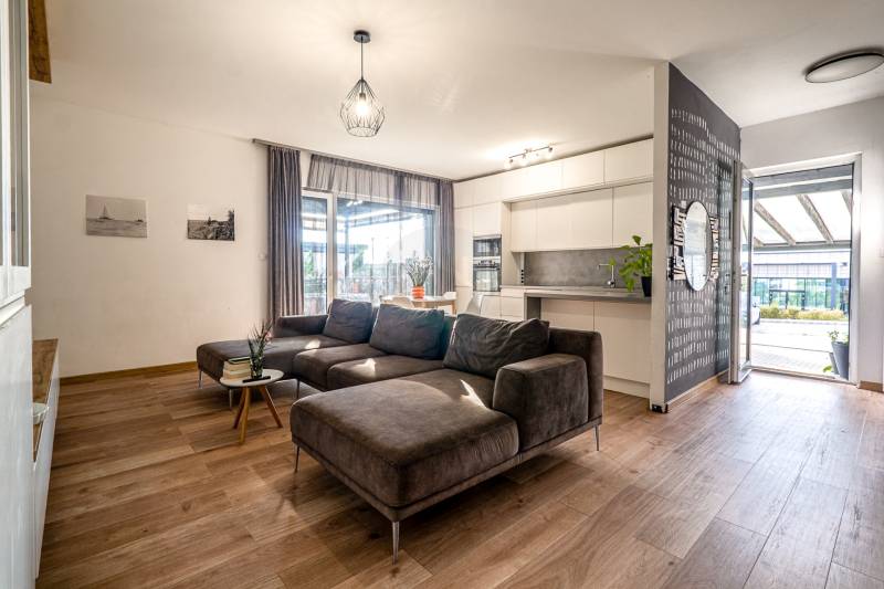 Biatorbágy egyik legdinamikusabban fejlődő, új építésű részén kínálunk megvételre egy 2020-ban épült, modern kialakítású, belső kétszintes lakást, amely ideális választás családok számára, akik egy kényelmes, energiatakarékos és jól átgondolt otthont keresnek.A lakás nettó 100 m² alapterületű, praktikus és jól élhető elosztással.Földszint:• előtér• világos, tágas konyha–étkező–nappali egy légtérben• külön dolgozószoba (vendégszobának is kiváló)• fürdőszoba WC-velEmelet:• 3 jó méretű hálószoba• fürdőszoba WC-velA modern műszaki megoldásoknak köszönhetően az ingatlan kifejezetten energiahatékony és komfortos.Főbb műszaki jellemzők:• hőszivattyús fűtési rendszer• padló- és falfűtés, amely hűtésre is használható• 3 db hűtő-fűtő klíma• kiépített szellőztető rendszer • 3 rétegű műanyag nyílászárók, hő- és törésálló fóliával• beépített elektromos redőnyökA lakáshoz tartozó kert igényesen kialakított, minőségi holland pázsittal, valamint egy jó méretű, körbekerített terasz is rendelkezésre áll, amely tökéletes helyszíne lehet családi vagy baráti összejöveteleknek.Az udvarban viacolorral burkolt, fedett kocsibeálló található.Lokáció:Az ingatlan elhelyezkedése kiváló: minden fontos szolgáltatás, bolt, iskola, óvoda és közlekedési lehetőség könnyen elérhető, így ideális választás azok számára, akik nyugodt, mégis jól megközelíthető környezetben szeretnének élni.Ha egy modern, költséghatékony és azonnal költözhető otthont keres Biatorbágyon, ezt az ingatlant mindenképpen érdemes megnézni!