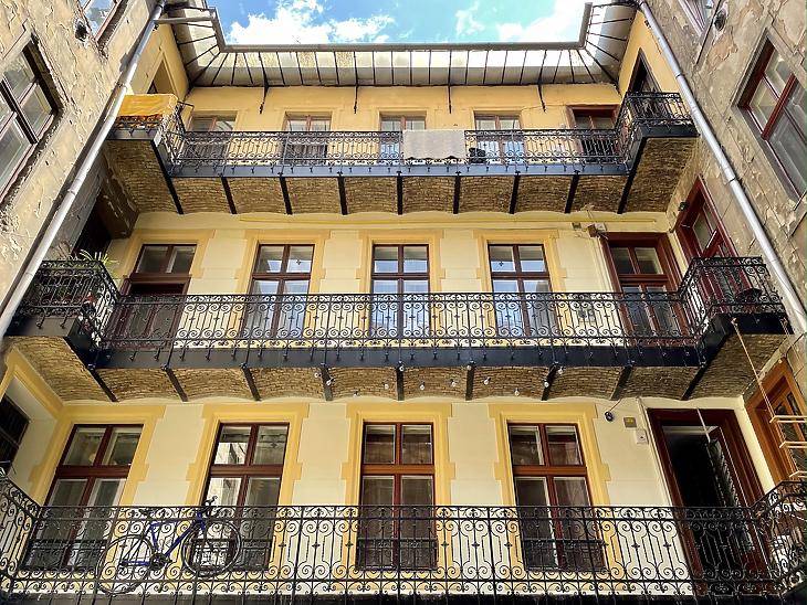 Palotanegyedben emeleti, tágas lakás egy XIX. század végén épült, klasszikus társasházban. Az ingatlan a ház hátsó homlokzati traktusában található, és ezen a szinten egyedüli lakásként foglalja el a hátsó épületszárnyat.A 70 nm-es lakás 3 szobával, 2 fürdőszobával és 2 mellékhelyiséggel rendelkezik.A 2015-ös felújítások során cserélték a villanyvezetékeket, burkolatokat, 2020-ban klímaberendezések kerültek beépítésre - melyek egyaránt gondoskodnak a fűtésről és a hűtésről. A nyílászárók több rétegű, hő- és hangszigetelt üvegezést kaptak, így a belső terek csendesek és energiatakarékosak. A melegvíz-ellátást mindkét fürdőszobában külön villanybojler biztosítja, az egyik fürdő zuhanyzós, a másik kádas kialakítású.A 35.000.- forintos közös költség tartalmazza a korlátlan vízfogyasztást. Sétatávolságra található több étterem és kávézó is, a Mikszáth tér és a Blaha Lujza tér. Számos bevásárlási lehetőség található a környéken, az EUROPEUM Bevásárlóközpont, LIDL és ALDI áruház. A tömegközlekedés kiváló, a József körúton a 4-6-os villamos, illetve a közeli Blaha Lujza téren az M2-es metrómegálló és számos buszhálózat is elérhető. Az adatok tájékoztató jellegűek. Vevőink számára a közvetítés díjtalan.