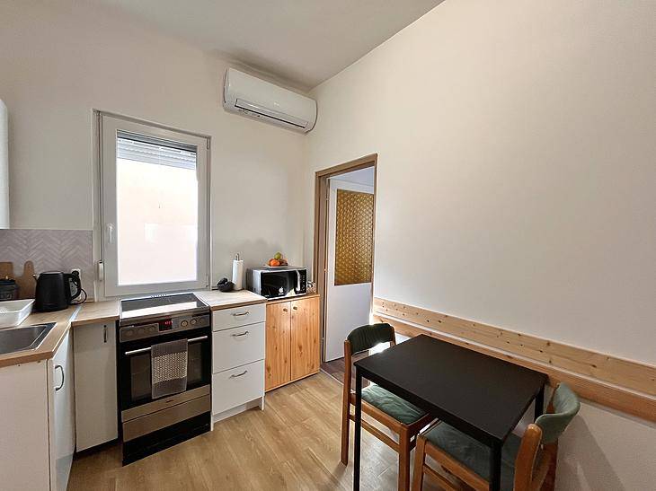 Békásmegyer- Ófaluban ELADÓ egy 50 négyzetméteres házrész 120 négyzetméteres telken!Az ingatlan 1932-ben épült, viszont teljes felújításon esett át.A házrész jelenlegi elosztása 2 szobából, egy konyhából, egy fürdőből és előszobából áll. A nyílászárók műanyag thermo üvegesek.Az ingatlan utcára néző ablakokkal rendelkezik.Fűtésről a fa tüzelésű cserépkályha mellett klíma és a kisebb szobában padlófűtés gondoskodik. Ez átlagosan 30.000 Ft/hó.Az ingatlan bútorozott és gépesített, melyek megegyezés alapján a megvásárolhatóak.Tartozik az ingatlanhoz padlás, ahova a nappaliból lehet feljutni, valamint pince és két sufni is. Az egyik sufniba a víz is be van vezetve.A házrész megosztási szerződéssel van jogilag elkülönítve.Környékről:Közelben minden olyan szolgálatás megtalálható amire szüksége lehet a mindennapokban (kisebb élelmiszer boltok, piac, éttermek, gyógyszertárak). Gyerekes családoknak nagyon ideális hiszen játszóterek, Óvoda, Iskola, Egyetem van a közelben.Tömegközlekedés szempontjából is tökéletes hiszen pár perc sétára található számos buszmegálló, illetve a H5-ös hév.FINANSZÍROZÁS:Banki finanszírozással is megvásárolható, melyben irodánk ingyenes tanácsadással áll rendelkezésükre!VEVŐINK RÉSZÉRE A KÖZVETÍTÉS DÍJTALAN!A beépített bútorzat a vételár részét képezi.A hirdetésben szereplő adatok tájékoztató jellegűek.