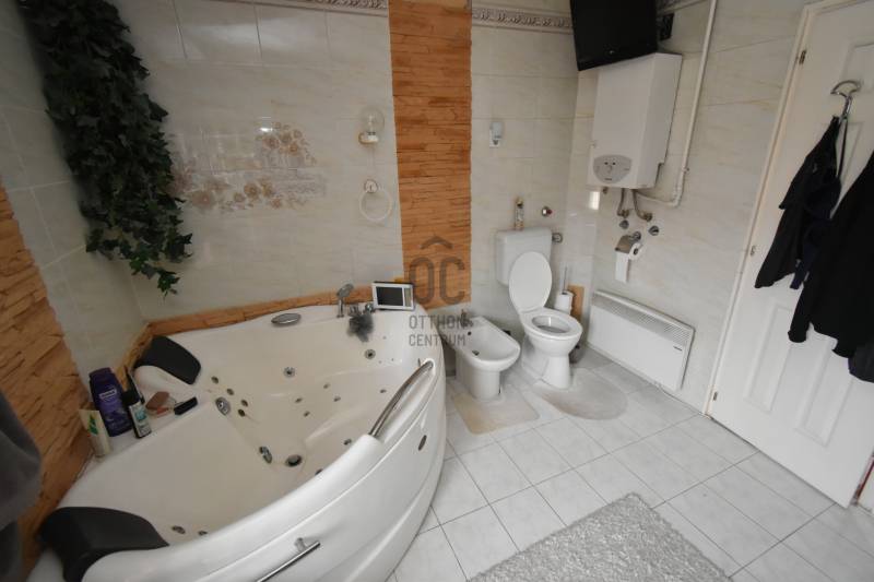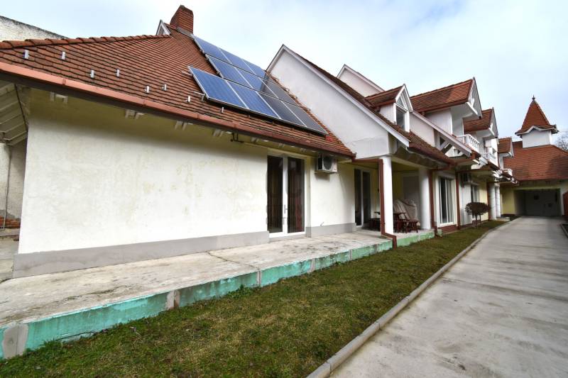 5 külön bejáratú lakás egy családi házban.Ez a kiváló állapotú, átépített, teljes körűen felújított családi ház, tökéletes választás lehet mindazok számára, akik kényelmes és tágas otthonra vágynak, vagy akár befektetési céllal keresnek ingatlant.A ház egy 1115 m2-es telken helyezkedik el, nettó 403 m2-es alapterülettel rendelkezik, amely nyolc szobát és öt fürdőszobát foglal magában, így ideális lehet nagyobb családok számára, vagy akár üzleti célra, vendégház üzemeltetésére, kiadásra.Mind az öt külön bejáratú lakrész önállóan is funkcionál.Kondenzációs gáz cirkó kazán biztosítja a fűtést, amelyből tartalék készülék is fel lett szerelve, a meleg víz ellátást pedig 3 db villany bojler végzi.Az energiatakarékos üzemeltetést 5 kW-os napelem rendszer biztosítja, amely 10 kW-os fejlesztés alatt van, hibrid üzemmódban.Az emeleten radiátoros, míg a földszinten padlófűtés és radiátoros hőleadás van.Az összes nyílászáró műanyag szerkezetű.A ház egészében klíma berendezések gondoskodnak a megfelelő hőmérsékletről.A földszinti, utca fronton kialakított lakás 38 m2-es, egy nappali + konyha + étkező, szoba és fürdőszoba + WC helyiségekből áll.Ezen a szinten egy további nagy méretű lakás található, amely 144 m2-es, tágas nappalival, 2 szobával, fürdőszobával, 2 db WC-vel, konyha + étkezővel, kamrával, tárolóval.Az utcafronti lépcsőházból megközelíthető emeleten 3 db önálló bejáratú lakrész került megépítésre, 26, 27,6 és 34,2 m2-es nettó méretekkel.Mindegyikben szoba, konyha + étkező, fürdő + WC helyiségek lettek kialakítva.A ház déli oldalán kis méretű erkélyekre lehet kijutni. A földszinten pedig egy szintén déli tájolású terasz biztosítja a lakók komfortját.Az udvarban 4 db garázs épült, de a parkolás a ház előtt is megoldható.A felső 3 db lakás bútorozottan, az alsó szint üresen kerül átadásra a leendő tulajdonosnak.Az utcafronti tető tisztítását és a homlokzat festését a tulajdonos elvégzi.A környék rendkívül kedvező adottságokkal bír: a belváros közelsége miatt minden fontosabb szolgáltatás, mint például boltok, éttermek és iskolák könnyedén elérhető.A tömegközlekedési lehetőségek is kiválóak.Az autós közlekedés szempontjából is ideális, hiszen a főbb közlekedési útvonalak, valamint a gyorsforgalmi utak könnyen megközelíthetők.A környék biztonságos és csendes, amely lehetőséget biztosít a nyugodt mindennapok eltöltésére, miközben a város pezsgése is karnyújtásnyira van.Ez az ingatlan nemcsak egy otthon, hanem egy lehetőség is, hogy egy értékes ingatlan birtokosa legyen, amely hosszú távon megtérülő befektetést is jelenthet.Bármilyen kérdés esetén szívesen állok rendelkezésére, hogy segítsek Önnek megtalálni álmai otthonát vagy befektetését.Az ingatlan piaca folyamatosan változik, ezért érdemes mihamarabb lépni, hogy ne maradjon le erről a páratlan lehetőségről.Kérem, ne habozzon kapcsolatba lépni velem, hogy további részleteket oszthassak meg Önnel, és lehetőséget biztosíthassak az ingatlan megtekintésére.Irodánk teljes körű szolgáltatást nyújt kereső ügyfeleinek.Szakszerű tanácsadással, ingyenes CSOK és hitelügyintézéssel, energetikai tanúsítvány elkészítésével és kedvező díjszabású ügyvéddel nyújtunk segítséget!