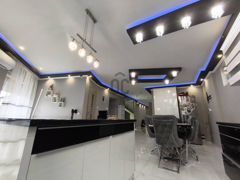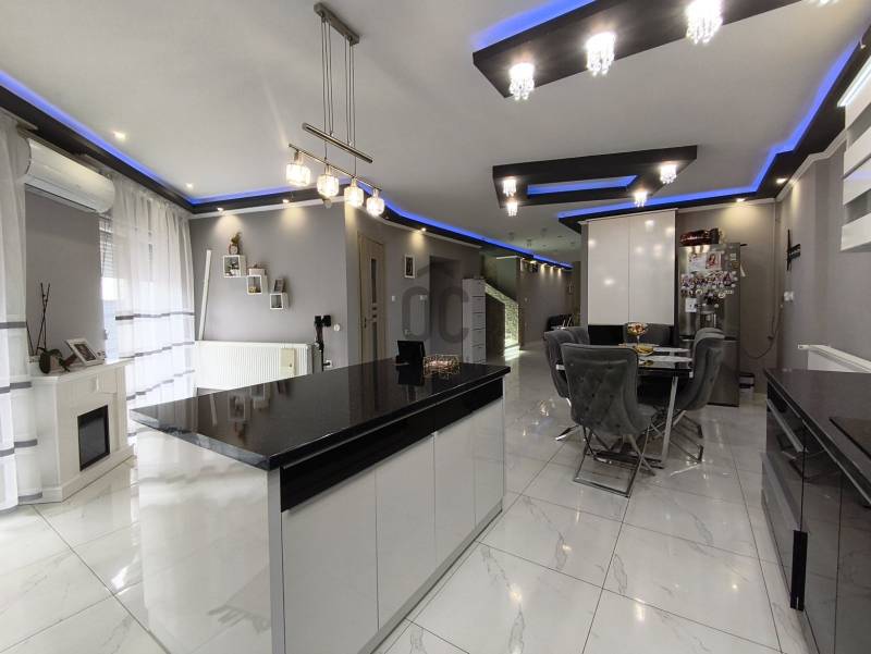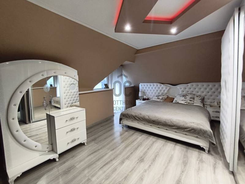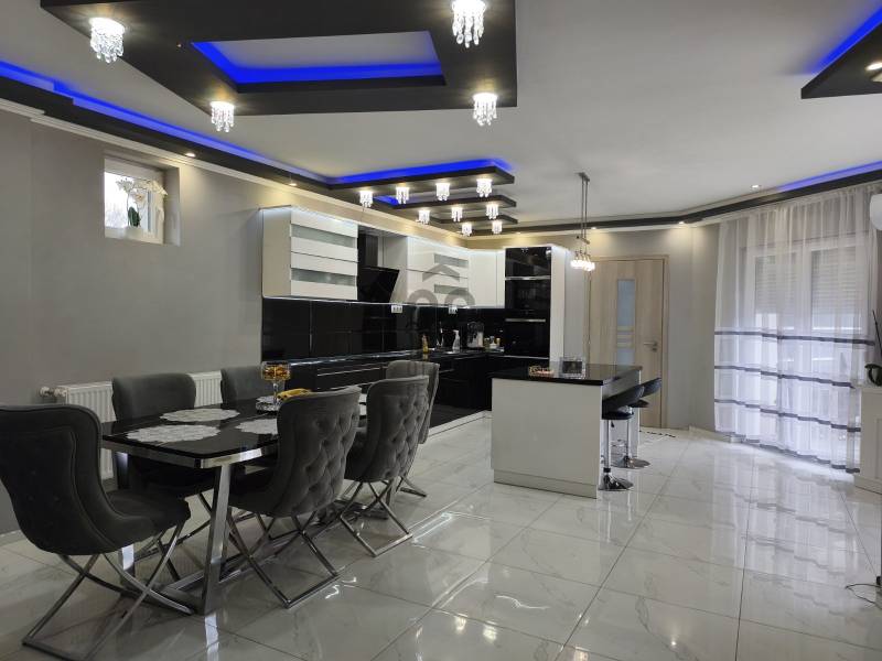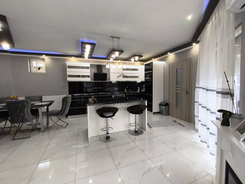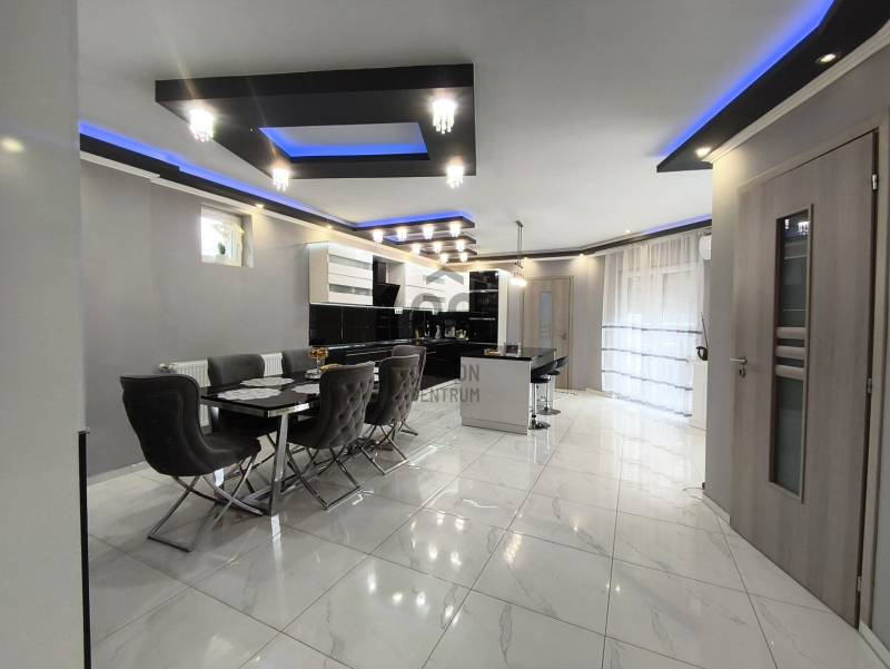 Eladó Marcali csendes, mégis központi részén egy 200 m2-es, szintes kialakítású, luxus családi ház, amely 2024-ben teljes körű felújításon esett át. A felújítás során megújult a villamos- és vízhálózat, kialakításra került 10 cm homlokzati hőszigetelés, valamint korszerű műanyag nyílászárók kerültek beépítésre hőszigetelt redőnnyel és szúnyoghálóval. Az ingatlan jól megtervezett belső terekkel rendelkezik, összesen öt szobával és három fürdőszobával, valamint saját szaunával rendelkezik, így a mindennapokban is valódi wellnes élményt nyújt. A Komfortot 2+1 db inverteres klíma (3,5 kw),radiátoros fűtési rendszer éjszakai áram biztosítja, alacsony fenntartási költségek mellett. A ház állapota kiváló, a gáz cirkófűtés biztosítja a kellemes meleget a téli hónapokban, míg a nyári időszakban a tágas szobák és a jól megvilágított terek hűvös, barátságos légkört teremtenek. Az udvarban 2 férőhelyes nyitott gépkocsi-beálló található. A LED hangulatvilágítás modern érzést kölcsönöz a lakásnak, lehetővé téve, hogy a család bármely tagja saját ízlésének megfelelően alakítsa ki a hangulatot a közös terekben. Nyugodt környezet, kiváló közlekedés, a városközpont , bevásárlási lehetőségek, intézmények csomópontok gyorsan elérhetőek. A közeli parkok és játszóterek, valamint a városban található iskolák és óvodák mind hozzájárulnak ahhoz, hogy a családok számára minden szükséges szolgáltatás könnyen elérhető legyen. Marcali városa gazdag kulturális programokban és közösségi eseményekben, így a családok aktívan részt vehetnek a helyi életben. A tömegközlekedési lehetőségek is kedvezőek, hiszen a helyi buszjáratok rendszeresen közlekednek, így a város más részei is egyszerűen elérhetők. Ez az ingatlan nem csupán egy ház, hanem egy otthon, ahol a család együtt élheti meg a mindennapokat. Ha Ön is keresi azt a helyet, ahol a gyermekeinek biztonságos és boldog környezetet tud biztosítani, ne habozzon, lépjen kapcsolatba velem bizalommal! Kérdéseivel és további információkkal kapcsolatban szívesen állok rendelkezésére, hogy segítsek Önnek megtalálni az álmai otthonát.