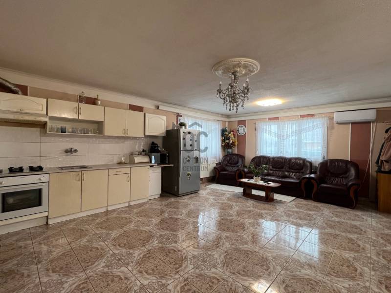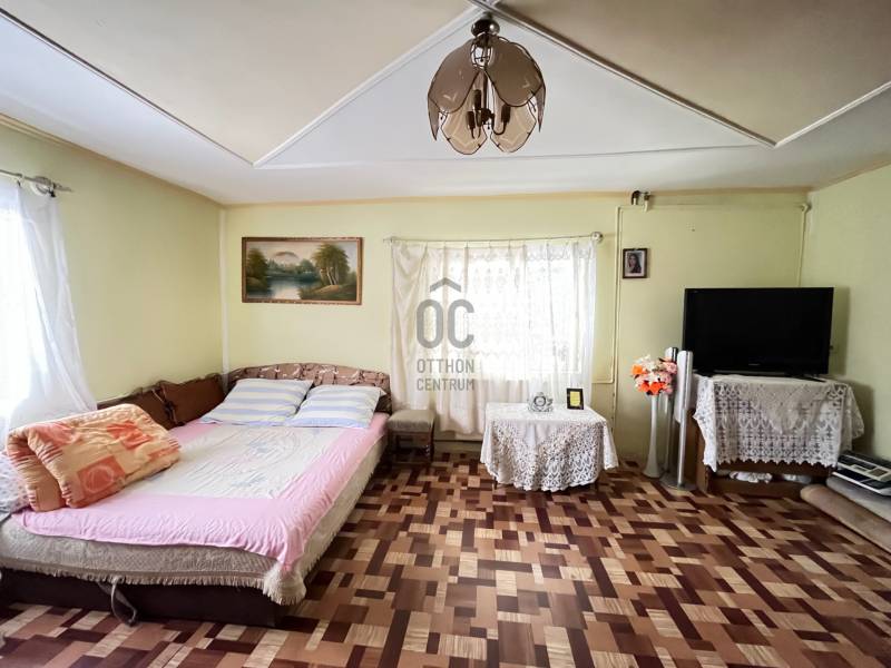 Fót volt zártkerti részén eladó egy 150 m2-es családi házA ház egy 700 m2-es telken található, mely még művelés alól nem lett kivonatva, így kifüggesztés köteles. Villany bevezetve, gáz az utcában, vezetékes víz és csatorna nincs a területen. A ház vízellátásáról fúrt kút és házivízmű gondoskodik. Az ingatlan 25 éve épült. 6 éve felújították, amikor is teljesen új tetőszerkezetet és cserép borítást kapott.Fűtése vegyestüzelésű kazánnal történik, de hűtő-fűtő kílma is telepítésre került.A ház egy hatalmas amerikai konyhás, étkezős nappaliból, 3 hálószobából és egy fürdőszobából áll. Az alaprajz tájékoztató jellegű.Az ingatlan rendezetlen jogi háttérrel bír, így csak készpénzes vásárlókat tudunk fogadni.