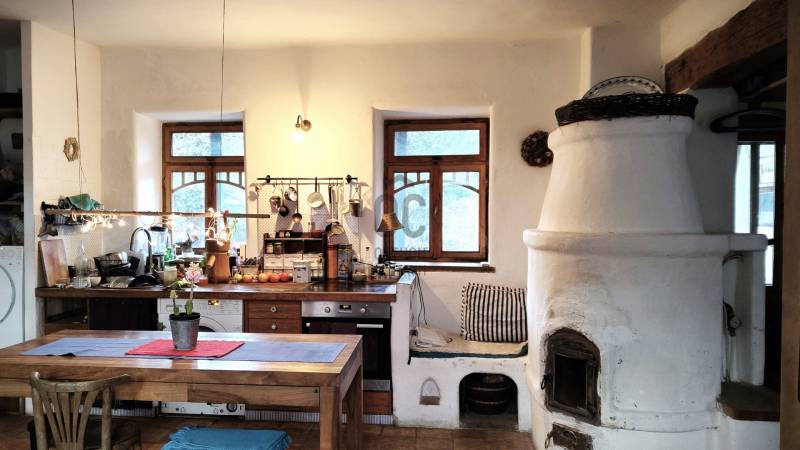 Vágyik egy helyre, ahol a reggeli kávé mellé templomtoronyra néző panoráma és erdőszéli csend jár? Orfű belterületén, egy hatalmas, közel 6000 m²-es dupla telken várja új gazdáját ez a különleges, autentikus parasztház.Hatalmas tér, végtelen lehetőség: A két helyrajzi számon fekvő, összesen 5956 m²-es terület valójában 2-3 építési portányi helyet kínál – ideális családi rezidenciának, vendégháznak vagy befektetésnek. Csodás panorámát nyújt Orfű községre, a templomtoronyra, illetve a környező hegyoldalakra. A telek egyik vége erdővel határos.A szép, tornácos ház helyi védettség alatt áll, nettó alapterülete 97 m2, amely áll előtérből, nagy konyha-étkező-nappali helyiségből (26 m2), nagyszobából, amely külön bejáratú is lehet, saját fürdő+wc-vel, kuckós kemencével, 2 félszobából, és egy kisebb szobából, valamint még egy fürdő+wc helyiségből. A fürdők két éve lettek átalakítva. A házhoz tartozik egy kívülről megközelíthető 15 m2-es pince, illetve egy melléképület, fészer, amelynek a megerősítése szükséges.A ház modernizálása 2008-ban történt, pl. a víz-, és villanyvezetékek cseréje, bekerültek a látszó fagerendák, kialakították a vízelvezetést a ház körül. Akkor készült el a két búbos kemence, amelyek közül a nappaliban lévő vízteres kialakítású, erről működik keringetős rendszerrel a radiátoros központi fűtés. A másik a nagyszobában van, az előtér felől fűthető, a szecessziós cserépkályhán keresztül. (Tipp: Ez a nagyszoba leválasztható a lakótér többi részétől, külön apartmanként funkcionálhat önálló utcai bejárattal.) A ház egyedi gyártású külső-belső nyílászárókat kapott, a hidegburkolat padlástégla, a fapadló pedig egyedi, asztalos által készített, de felújításra szorul. A födém-, és tetőszerkezet még eredeti állapotában van.Több, mint egy ingatlan: Életérzés.Ez a porta nem csak falakból áll – erős kisugárzása, békéje azonnal magával ragadja az embert. Itt az erdő a szomszéd, a kilátás pedig minden nap más arcát mutatja.Az ingatlan per- és tehermentes, azonnal birtokba vehető.Jöjjön el, érezzen rá a hangulatára, és legyen Ön is büszke orfűi lakos!Kérem, tekintse meg a tájékoztató jellegű alaprajzot!Tájékoztatásért hívjon nyugodtan!