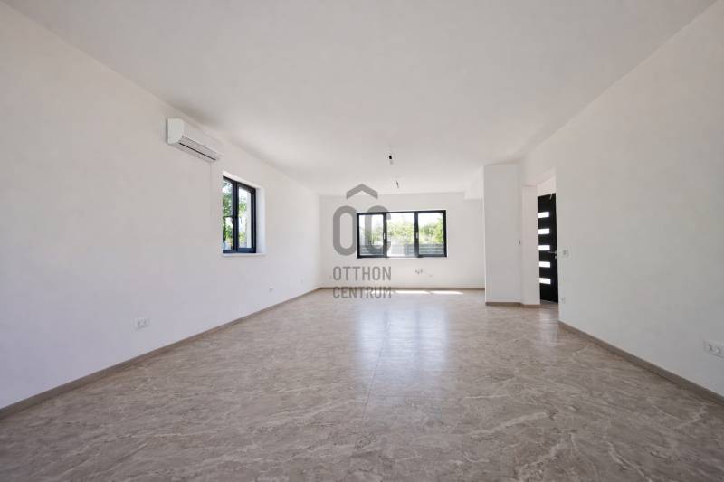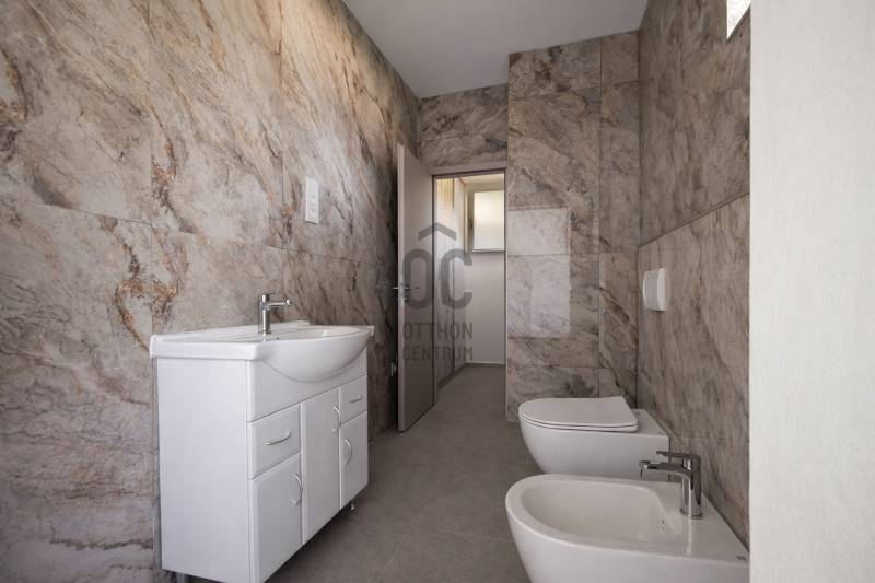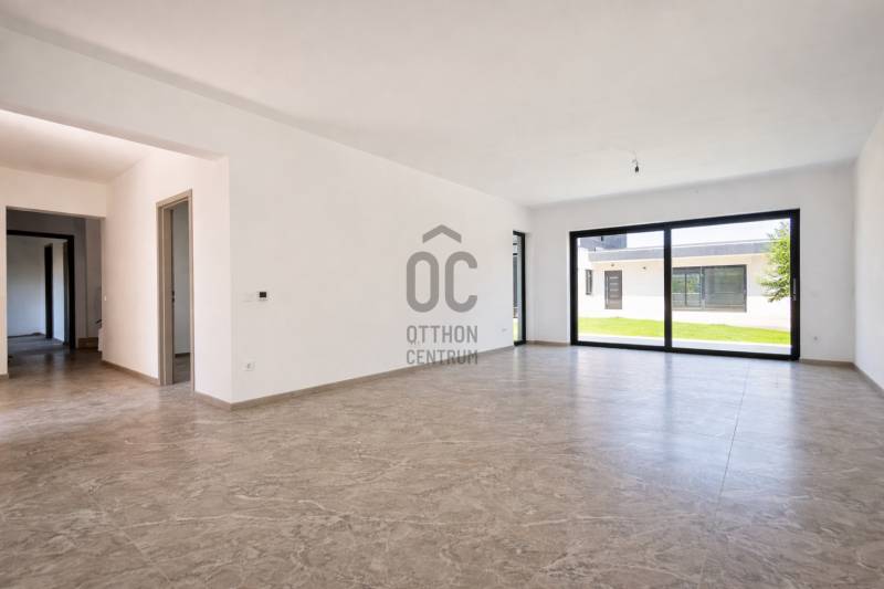Székesfehérváron, az Öreghegy egyik legszebb részén kínálunk eladásra egy 172,85 m² nettó lakóterű, modern stílusban épült, kertkapcsolatos családi házat terasszal, magas minőségben kivitelezve, kulcsrakész állapotban.Kialakítás és belső elrendezés:¤ Tágas, 50 m²-es amerikai konyhás nappali¤ Négy külön nyíló hálószoba¤ Minden hálószobához saját fürdőszoba és mellékhelyiség tartozik¤ Külön gardrób, háztartási helyiség és vendégmosdó¤ Letisztult, praktikus elrendezés, ami a családi élet minden igényét kiszolgáljaMűszaki tartalom:¤ 35 cm-es Thermo Block (RhinoCell) falazat¤ Külső 15 cm és belső 5 cm hőszigetelés¤ Monolit vasbeton födém¤ Hő- és vízszigetelt lapostető¤ Aluprof 3 rétegű alumínium nyílászárók redőny előkészítéssel¤ Elektromos padlófűtés helyiségenként szabályozható termosztáttal¤ 150 literes Hajdu villanybojler¤ Magas minőségű hideg- és melegburkolatok¤ Inverteres klíma minden helyiségben¤ Alumínium biztonsági bejárati ajtó, ujjlenyomat-olvasó előkészítéssel¤ Riasztórendszer előkészítés¤ Füvesített kert automata öntözőrendszerrel¤ Igény esetén dupla garázs is kérhetőKörnyékNyugodt, családi házas, kertvárosias övezet, kiváló lakókörnyezettel.MegközelíthetőségAz M7-es autópálya mindössze 2 percre, buszmegálló 400 méteren belül elérhető.Ez az ingatlan kiemelkedik a székesfehérvári kínálatból, ilyen minőségű új építésű ház ritkán kerül piacra. Ne szalassza el a lehetőséget, hogy az elsők között legyen, aki beköltözhet!#székesfehérvár #újépítésűház #eladóingatlan #családiház #öreghegy #kulcsrakészház #modernotthon #ingatlanpiac #otthonkeresés #minőségiingatlan #kertkapcsolat #teraszosház